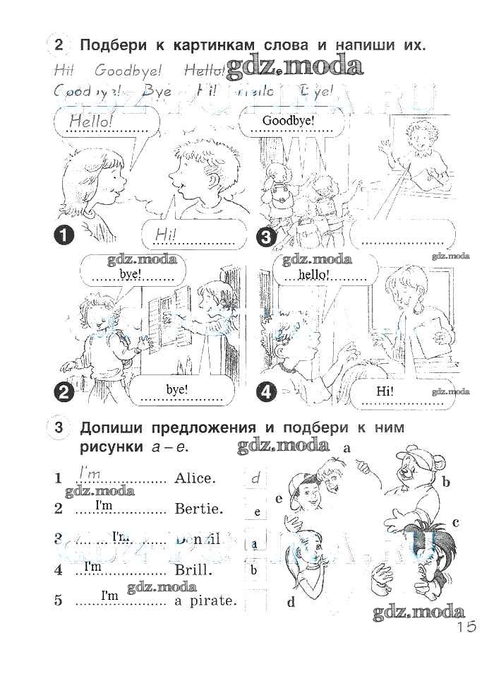 ГДЗ решение к заданию № 15 Английский язык 2 класс рабочая тетрадь Комарова Русское слово 2014 ФГОС бесплатно на гдз.мода!