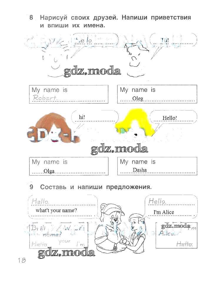 ГДЗ решение к заданию № 18 Английский язык 2 класс рабочая тетрадь Комарова Русское слово 2014 ФГОС бесплатно на гдз.мода!