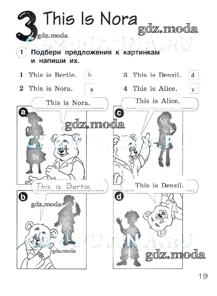 ГДЗ решение к заданию № 19 Английский язык 2 класс рабочая тетрадь Комарова Русское слово 2014 ФГОС бесплатно на гдз.мода!