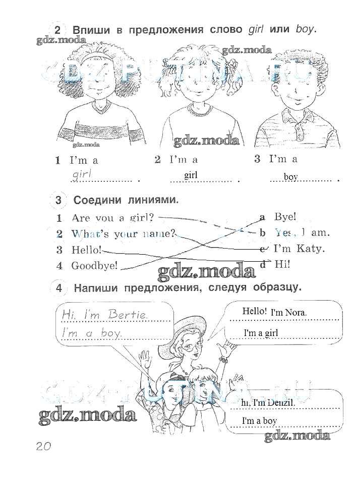 ГДЗ решение к заданию № 20 Английский язык 2 класс рабочая тетрадь Комарова Русское слово 2014 ФГОС бесплатно на гдз.мода!
