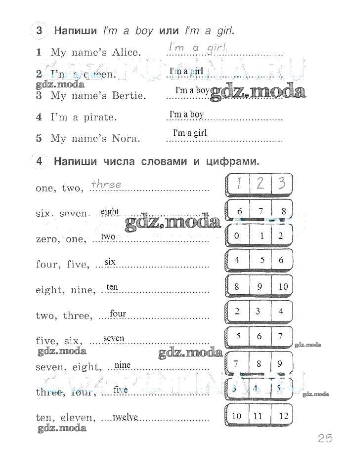 ГДЗ решение к заданию № 25 Английский язык 2 класс рабочая тетрадь Комарова Русское слово 2014 ФГОС бесплатно на гдз.мода!