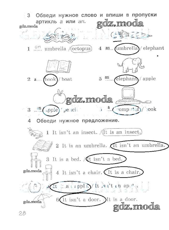 ГДЗ решение к заданию № 28 Английский язык 2 класс рабочая тетрадь Комарова Русское слово 2014 ФГОС бесплатно на гдз.мода!