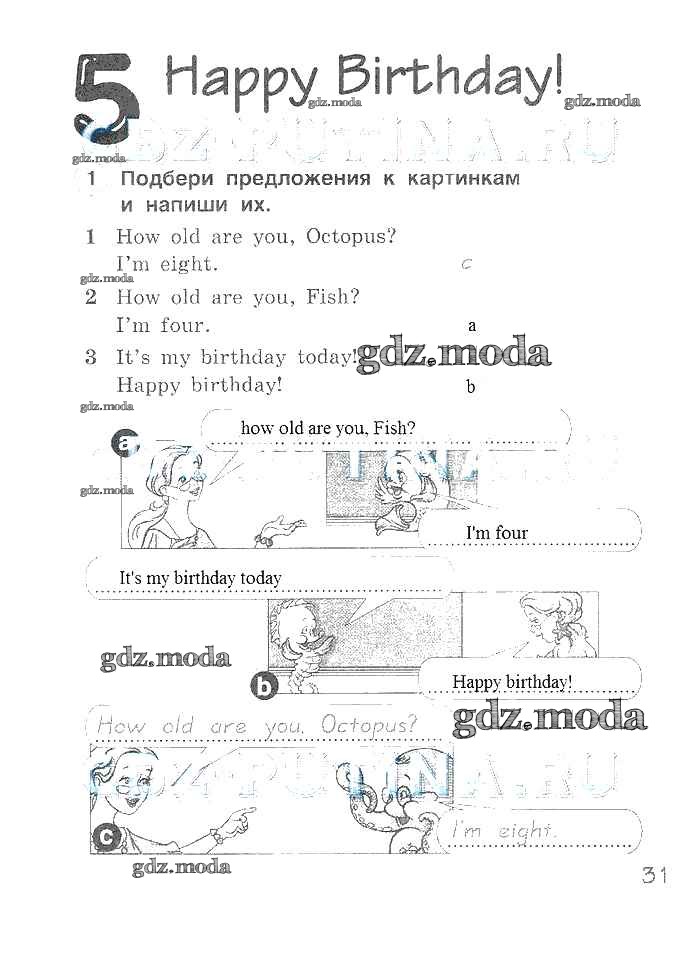 ГДЗ решение к заданию № 31 Английский язык 2 класс рабочая тетрадь Комарова Русское слово 2014 ФГОС бесплатно на гдз.мода!