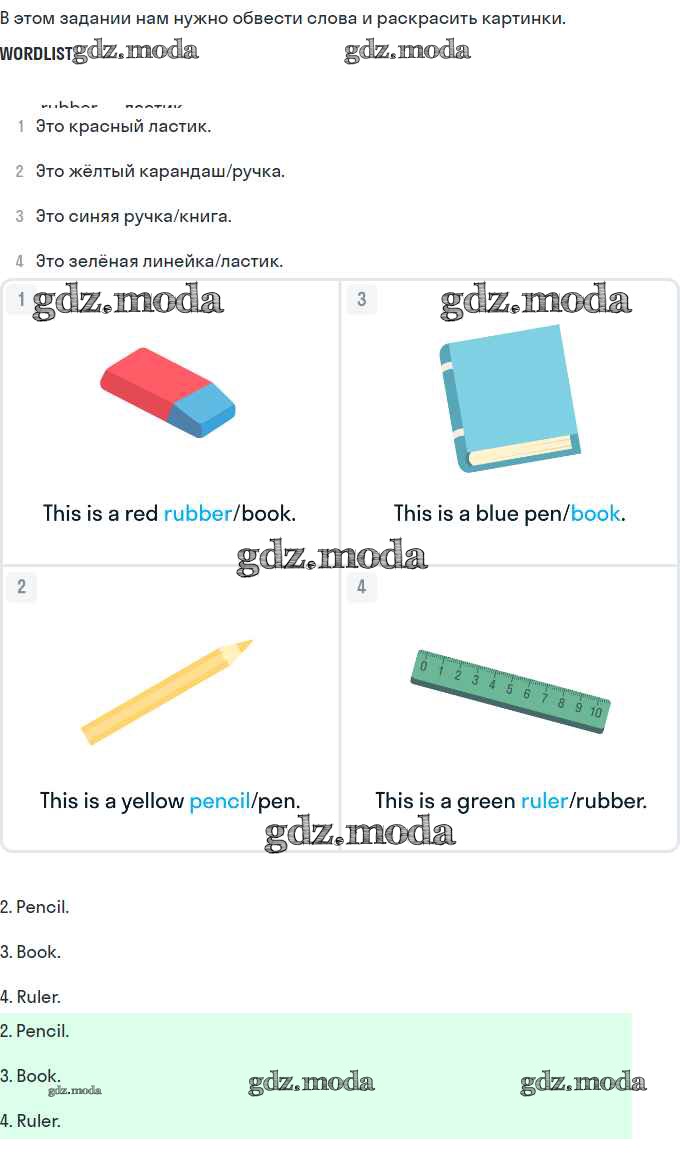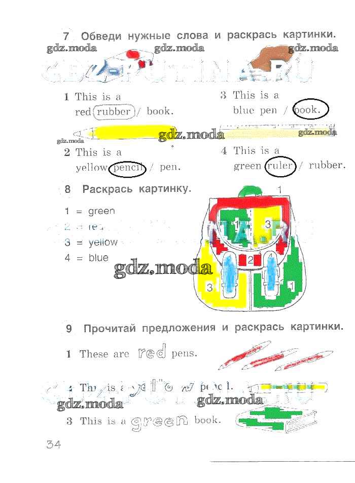 ГДЗ решение к заданию № 34 Английский язык 2 класс рабочая тетрадь Комарова Русское слово 2014 ФГОС бесплатно на гдз.мода!