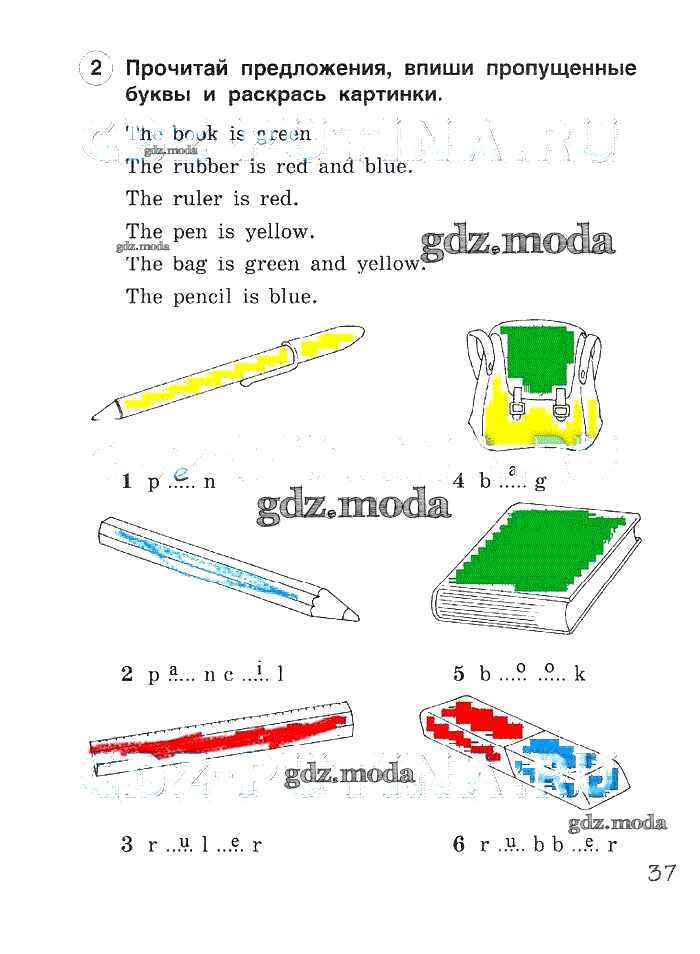 ГДЗ решение к заданию № 37 Английский язык 2 класс рабочая тетрадь Комарова Русское слово 2014 ФГОС бесплатно на гдз.мода!