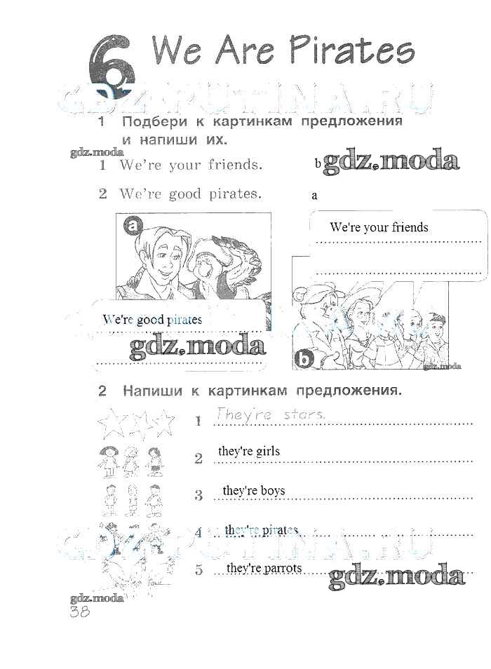 ГДЗ решение к заданию № 38 Английский язык 2 класс рабочая тетрадь Комарова Русское слово 2014 ФГОС бесплатно на гдз.мода!
