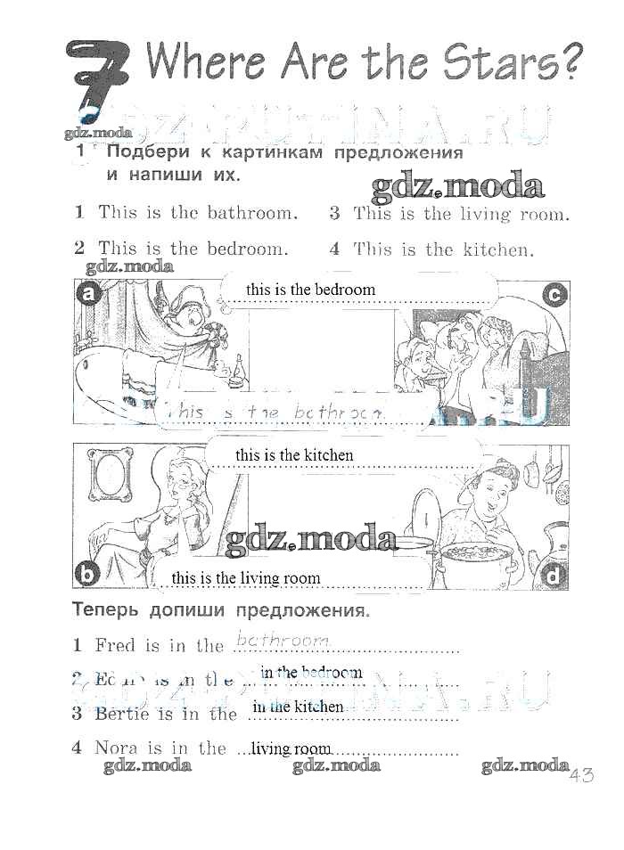 ГДЗ решение к заданию № 43 Английский язык 2 класс рабочая тетрадь Комарова Русское слово 2014 ФГОС бесплатно на гдз.мода!
