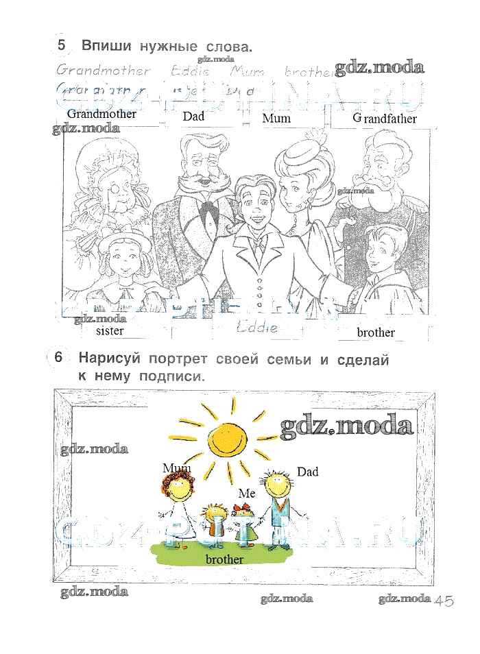 ГДЗ решение к заданию № 45 Английский язык 2 класс рабочая тетрадь Комарова Русское слово 2014 ФГОС бесплатно на гдз.мода!