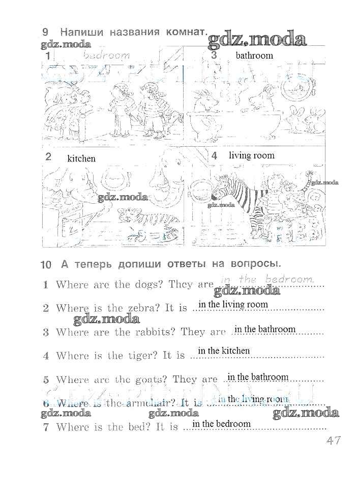 ГДЗ решение к заданию № 47 Английский язык 2 класс рабочая тетрадь Комарова Русское слово 2014 ФГОС бесплатно на гдз.мода!
