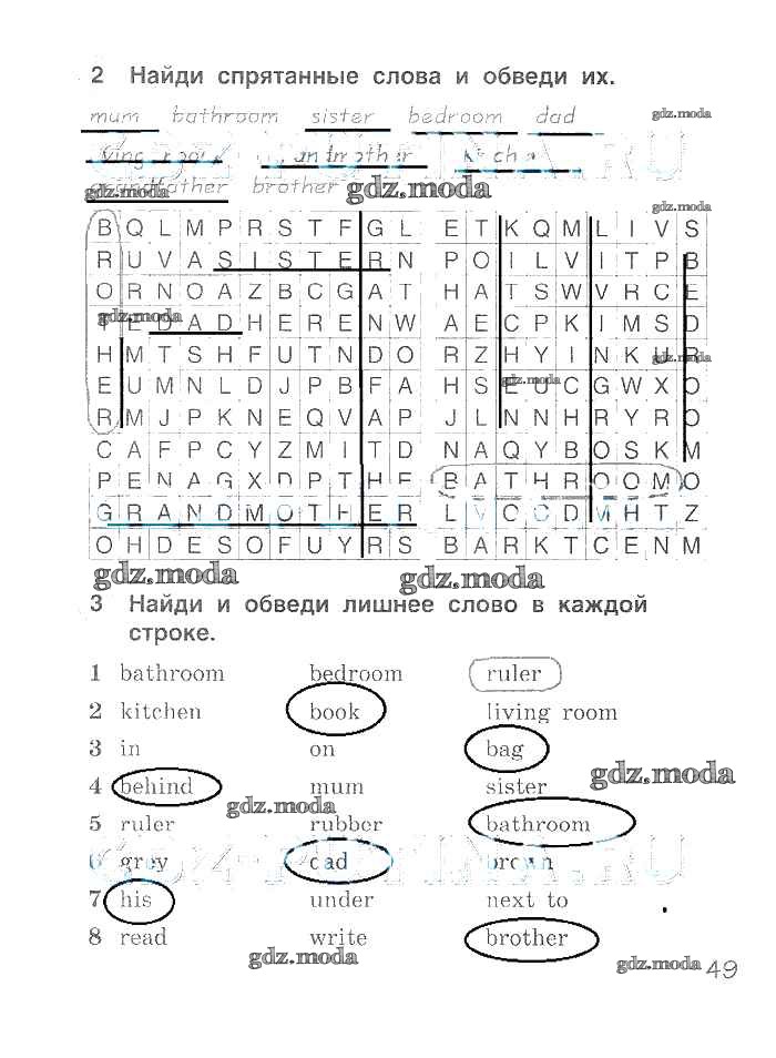 ГДЗ решение к заданию № 49 Английский язык 2 класс рабочая тетрадь Комарова Русское слово 2014 ФГОС бесплатно на гдз.мода!