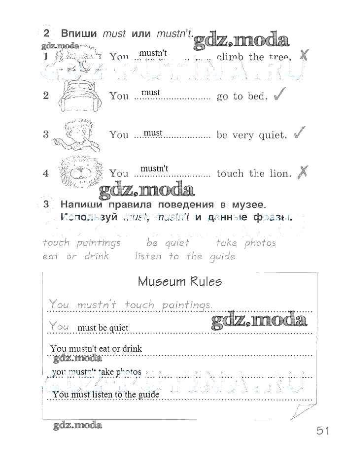 ГДЗ решение к заданию № 51 Английский язык 2 класс рабочая тетрадь Комарова Русское слово 2014 ФГОС бесплатно на гдз.мода!