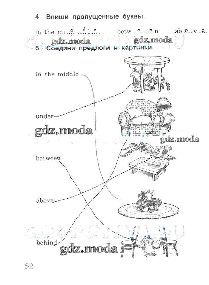 ГДЗ решение к заданию № 52 Английский язык 2 класс рабочая тетрадь Комарова Русское слово 2014 ФГОС бесплатно на гдз.мода!