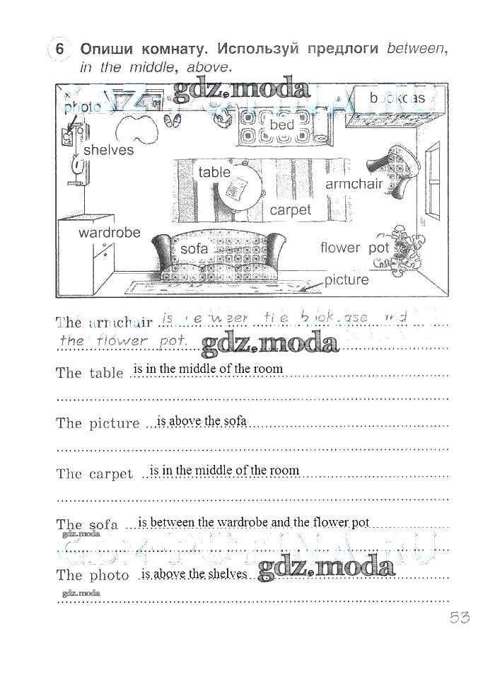 ГДЗ решение к заданию № 53 Английский язык 2 класс рабочая тетрадь Комарова Русское слово 2014 ФГОС бесплатно на гдз.мода!