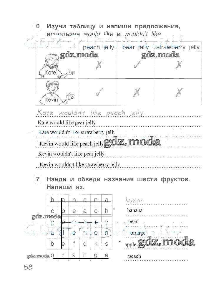ГДЗ решение к заданию № 58 Английский язык 2 класс рабочая тетрадь Комарова Русское слово 2014 ФГОС бесплатно на гдз.мода!