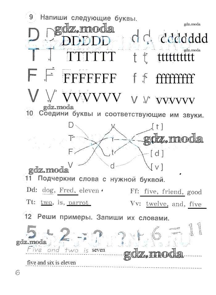 ГДЗ решение к заданию № 6 Английский язык 2 класс рабочая тетрадь Комарова Русское слово 2014 ФГОС бесплатно на гдз.мода!