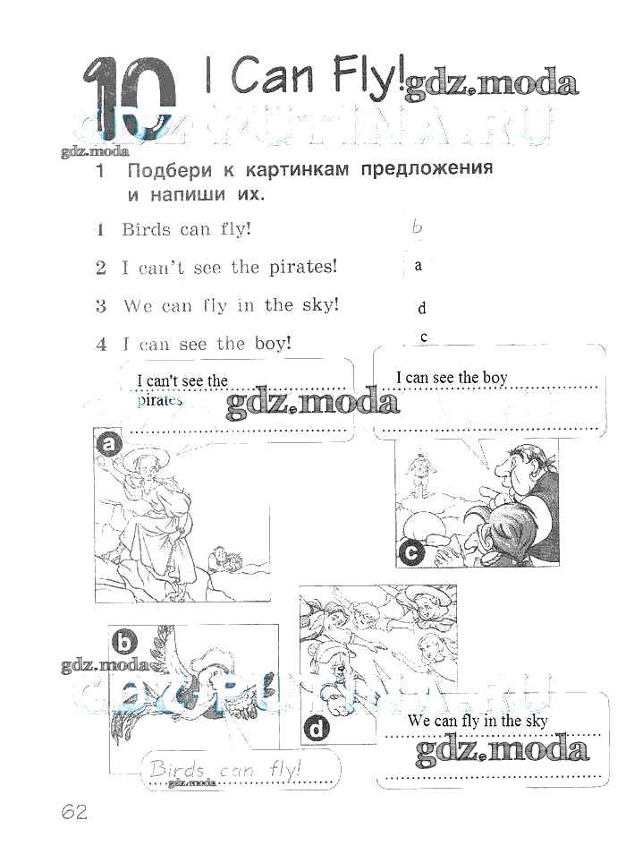 ГДЗ решение к заданию № 62 Английский язык 2 класс рабочая тетрадь Комарова Русское слово 2014 ФГОС бесплатно на гдз.мода!