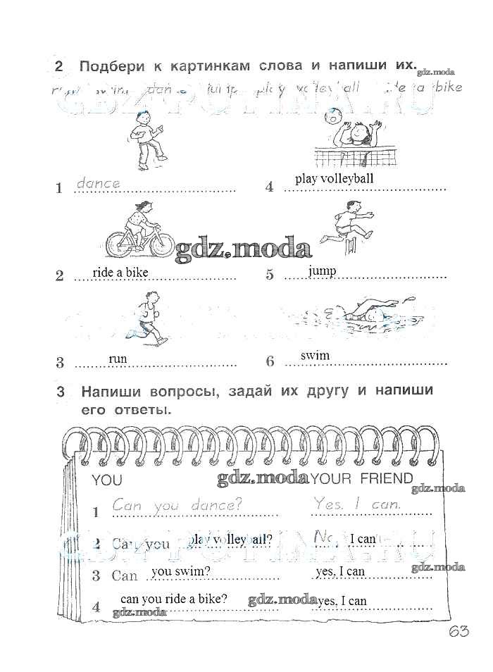 ГДЗ решение к заданию № 63 Английский язык 2 класс рабочая тетрадь Комарова Русское слово 2014 ФГОС бесплатно на гдз.мода!