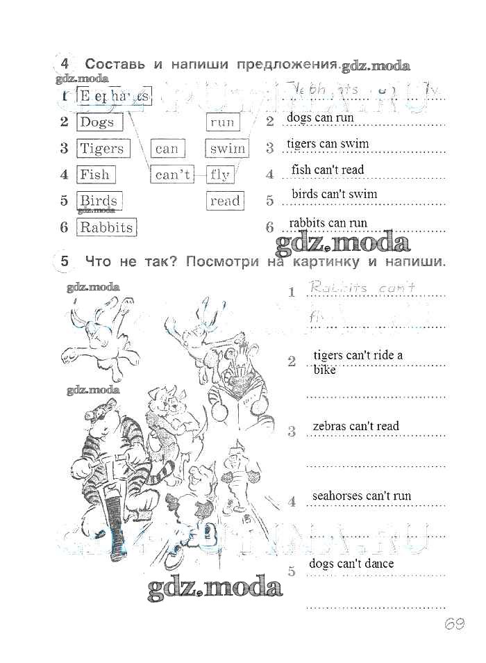 ГДЗ решение к заданию № 69 Английский язык 2 класс рабочая тетрадь Комарова Русское слово 2014 ФГОС бесплатно на гдз.мода!