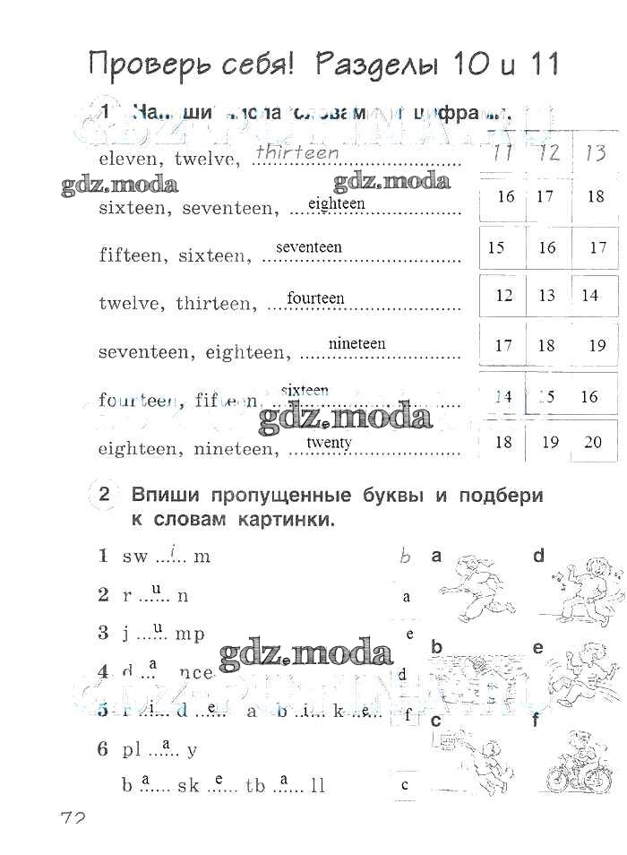 ГДЗ решение к заданию № 72 Английский язык 2 класс рабочая тетрадь Комарова Русское слово 2014 ФГОС бесплатно на гдз.мода!