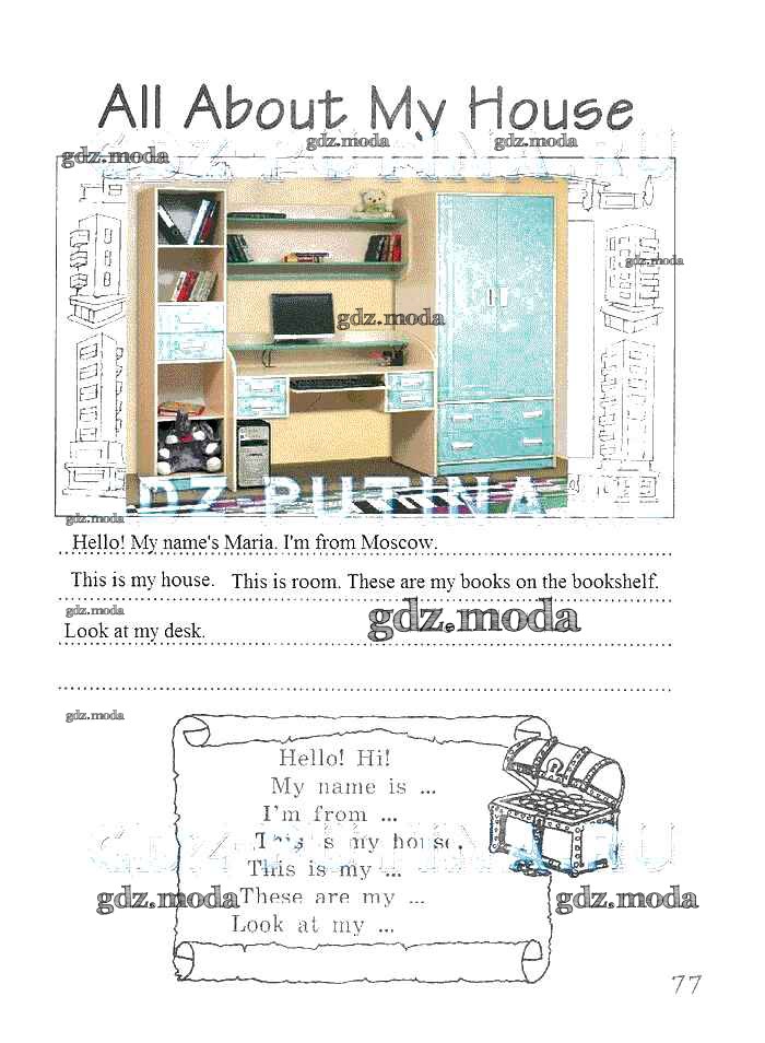 ГДЗ решение к заданию № 77 Английский язык 2 класс рабочая тетрадь Комарова Русское слово 2014 ФГОС бесплатно на гдз.мода!