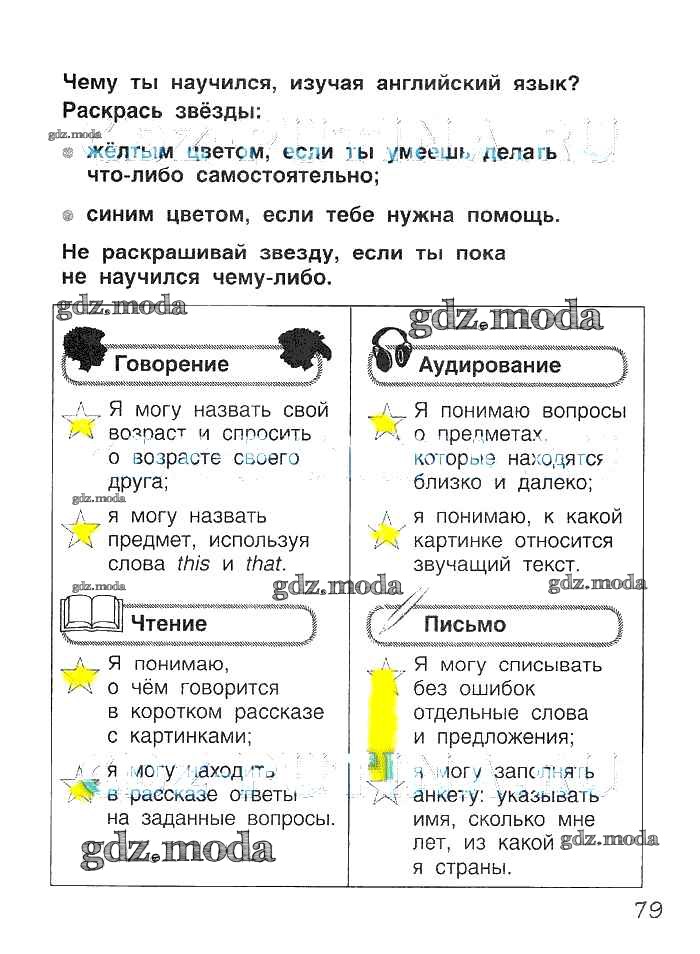 ГДЗ решение к заданию № 79 Английский язык 2 класс рабочая тетрадь Комарова Русское слово 2014 ФГОС бесплатно на гдз.мода!