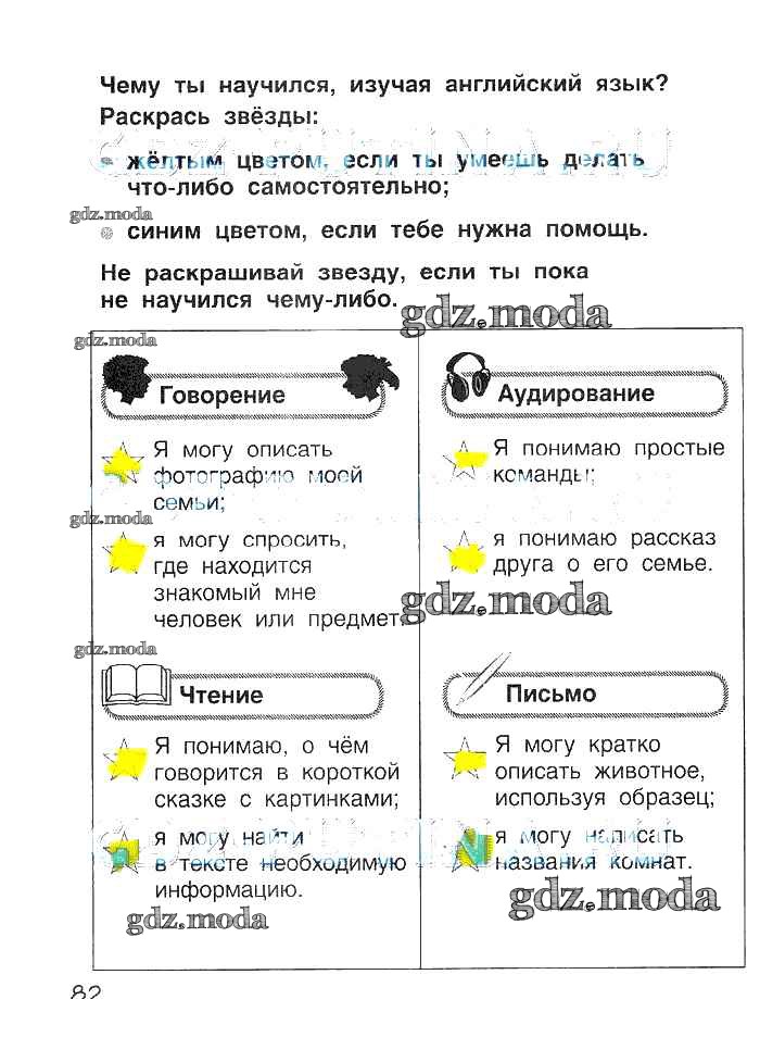 ГДЗ решение к заданию № 82 Английский язык 2 класс рабочая тетрадь Комарова Русское слово 2014 ФГОС бесплатно на гдз.мода!