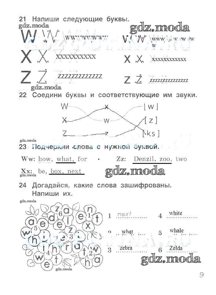 ГДЗ решение к заданию № 9 Английский язык 2 класс рабочая тетрадь Комарова Русское слово 2014 ФГОС бесплатно на гдз.мода!