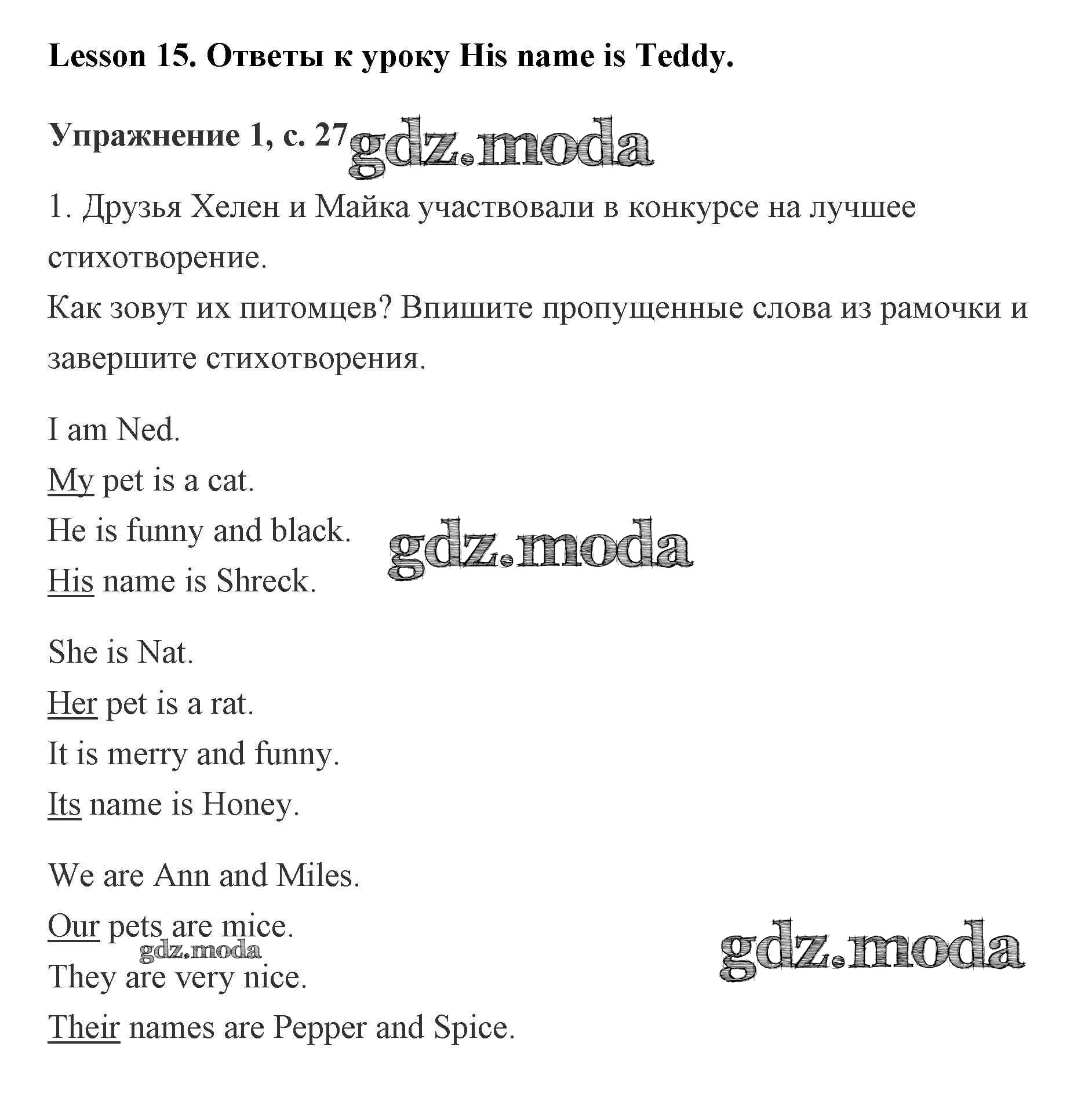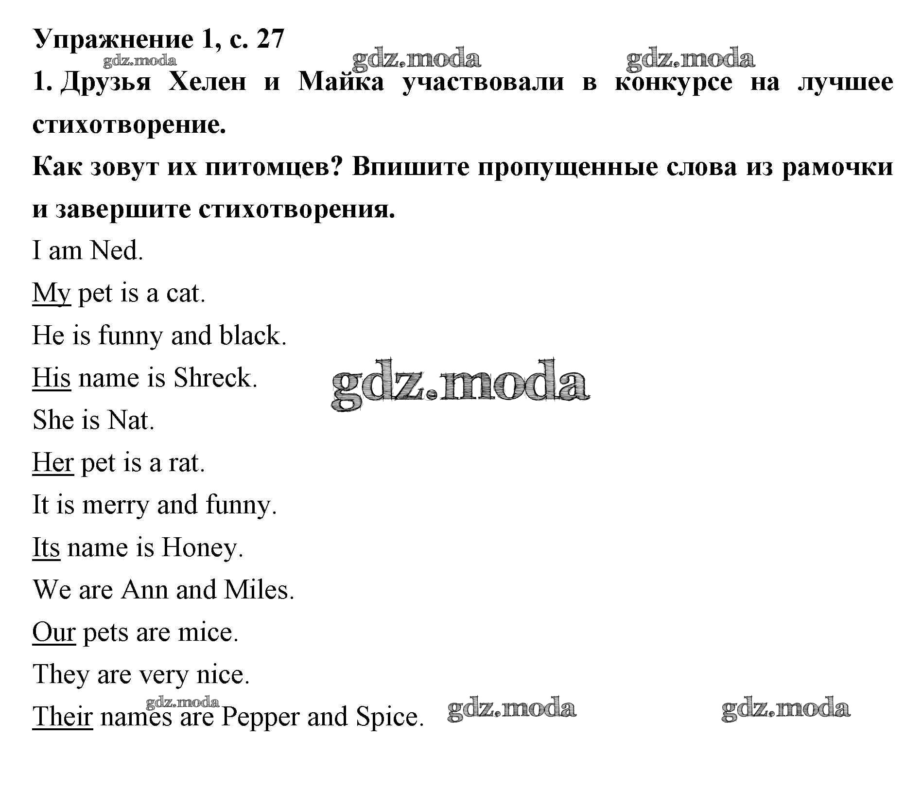 ОТВЕТ на задание № 27 Рабочая тетрадь по Английскому языку 2 класс Кузовлев