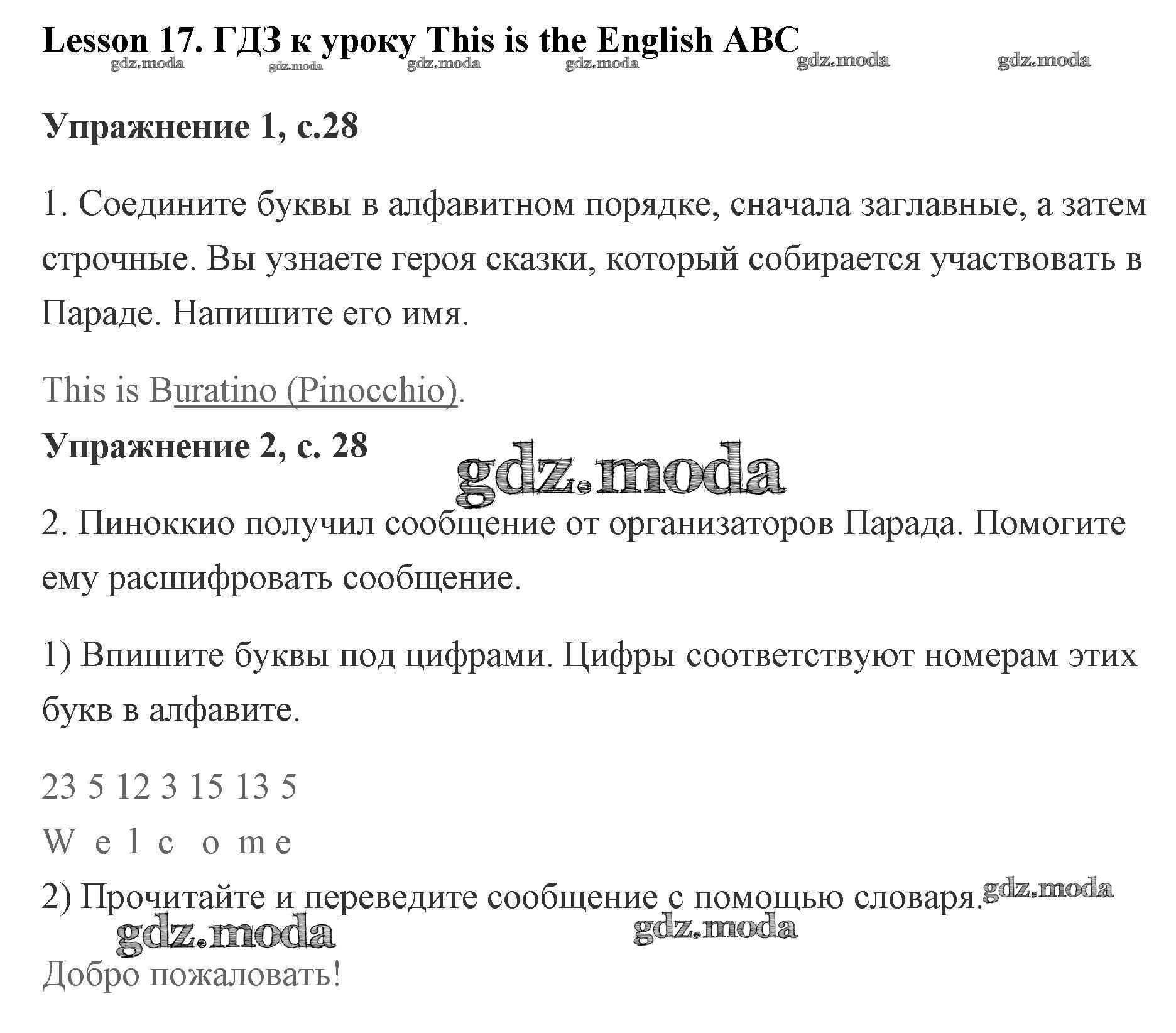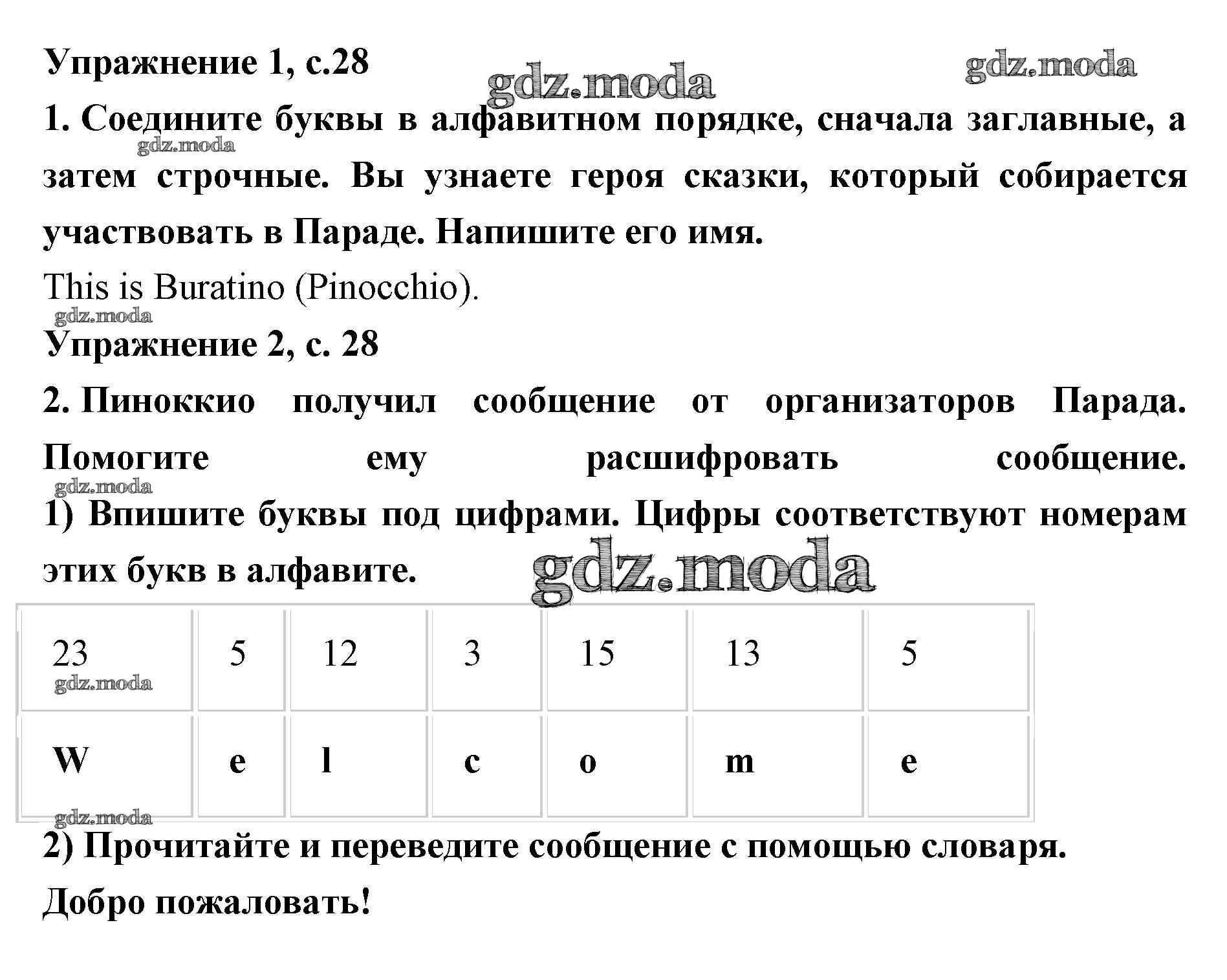 ОТВЕТ на задание № 28 Рабочая тетрадь по Английскому языку 2 класс Кузовлев