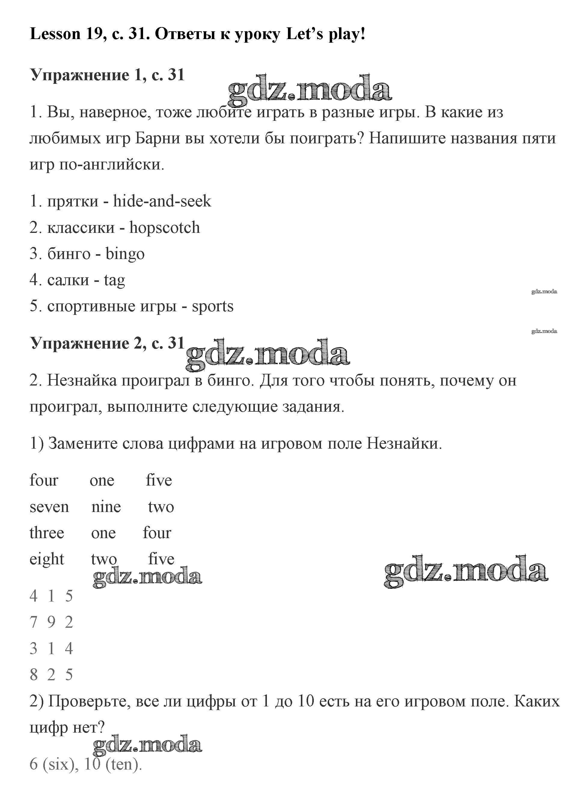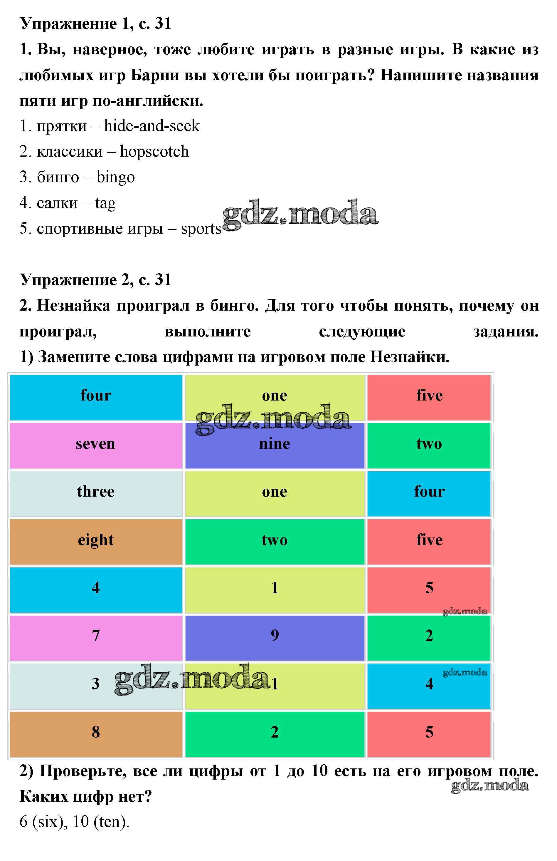 ОТВЕТ на задание № 31 Рабочая тетрадь по Английскому языку 2 класс Кузовлев