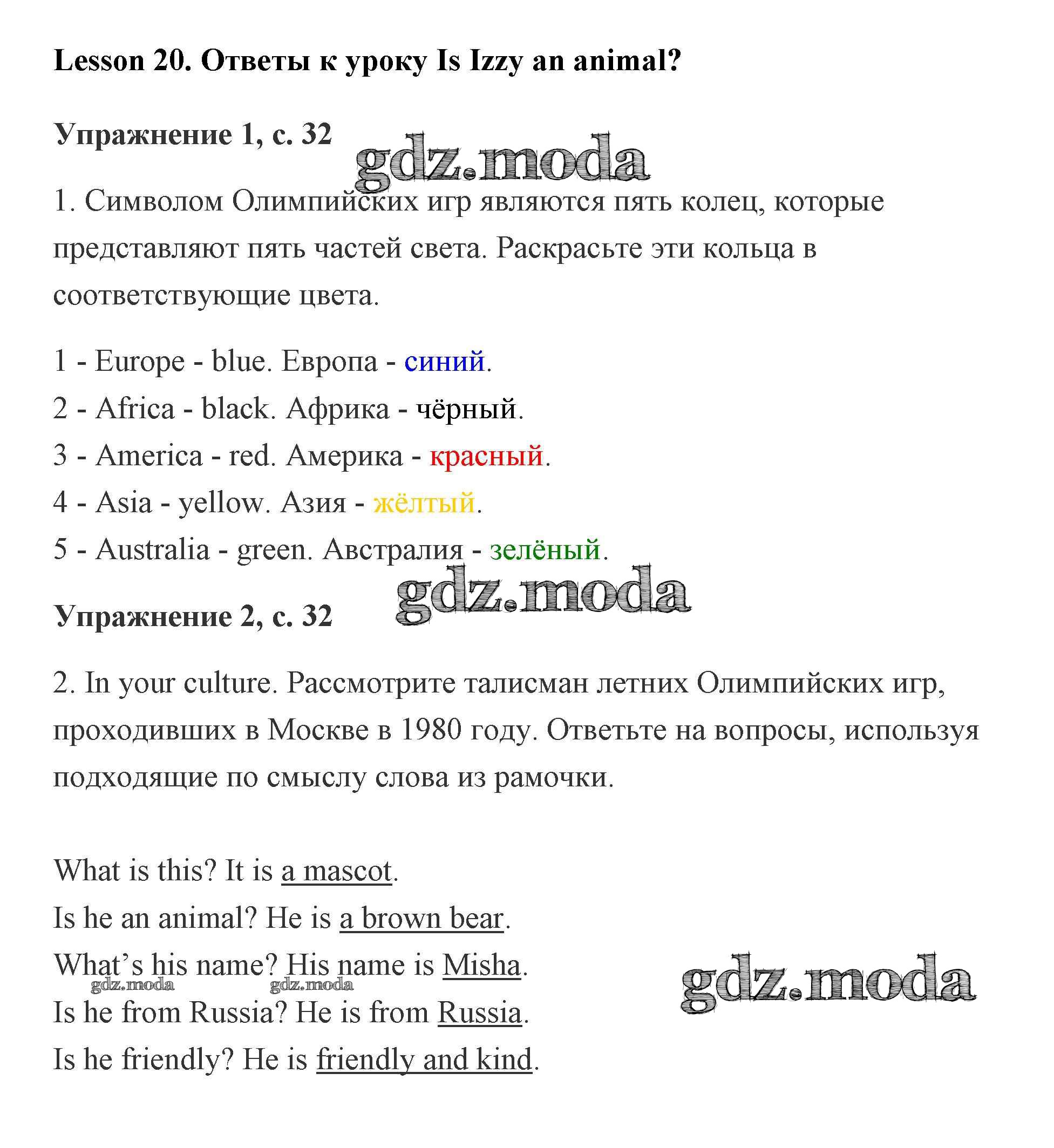 ОТВЕТ на задание № 32 Рабочая тетрадь по Английскому языку 2 класс Кузовлев