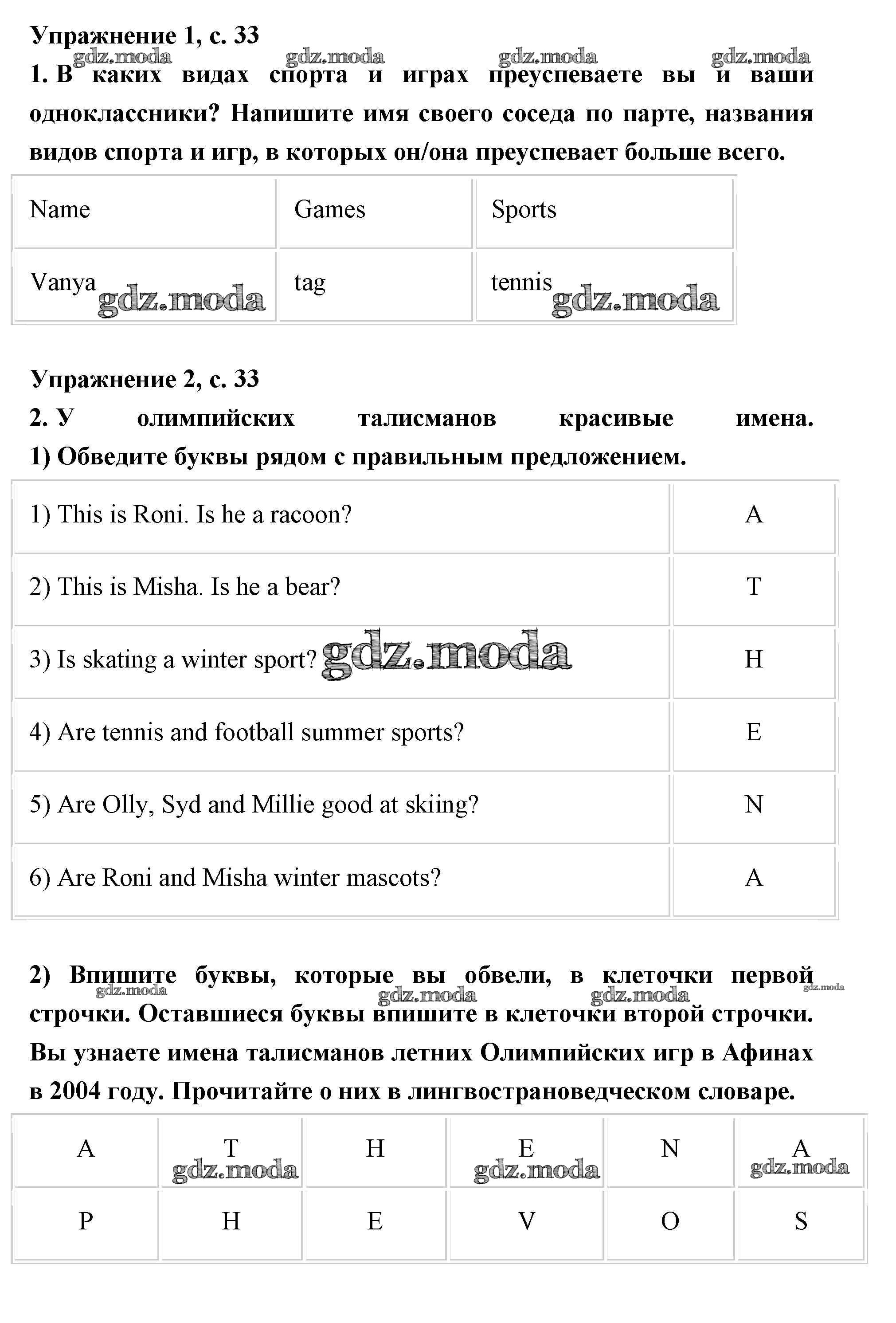 ОТВЕТ на задание № 33 Рабочая тетрадь по Английскому языку 2 класс Кузовлев