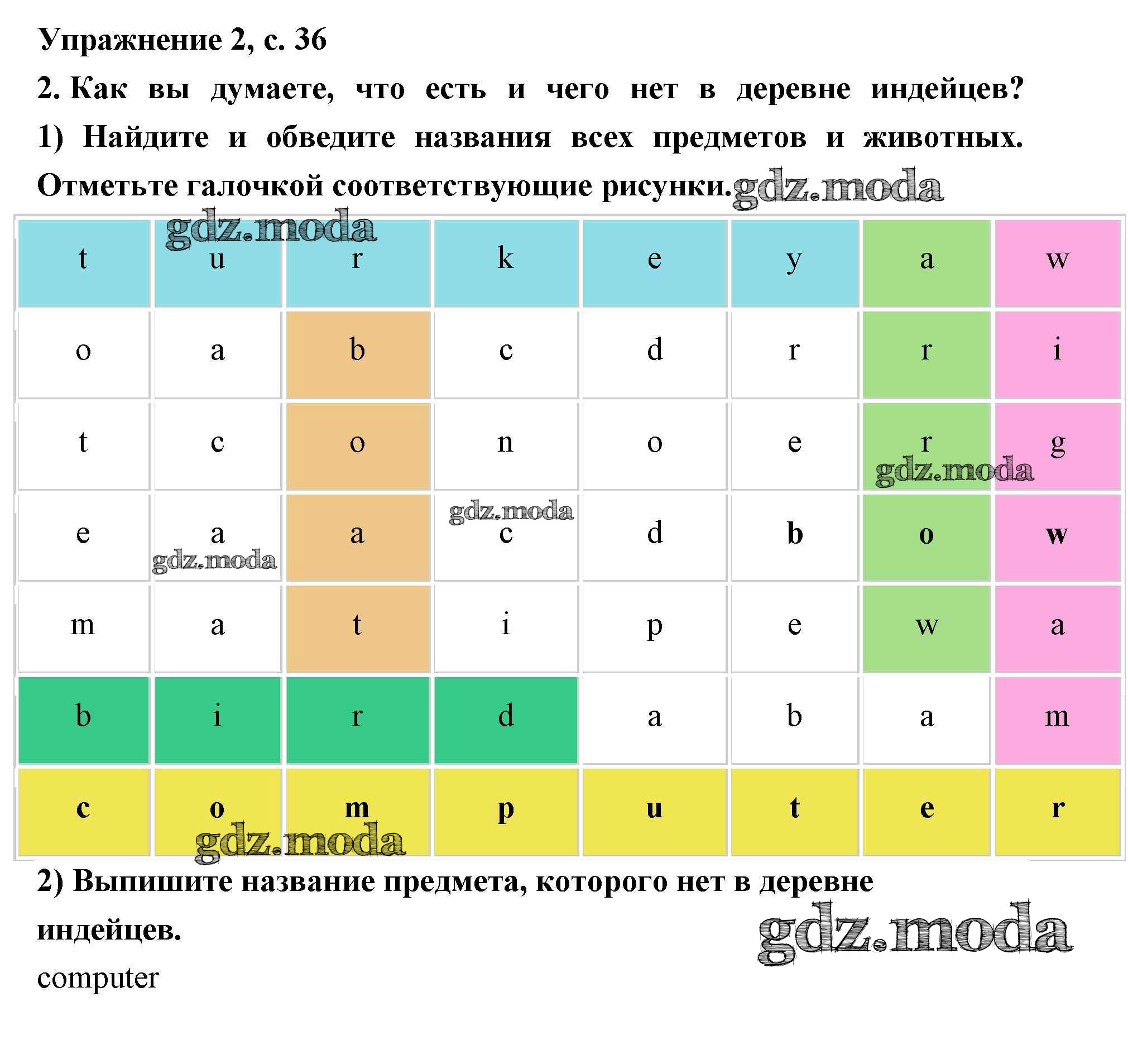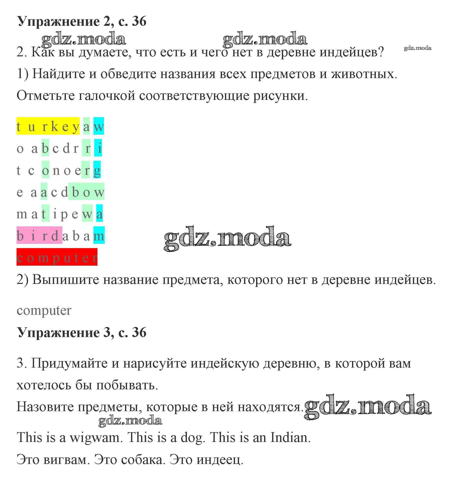 ОТВЕТ на задание № 36 Рабочая тетрадь по Английскому языку 2 класс Кузовлев