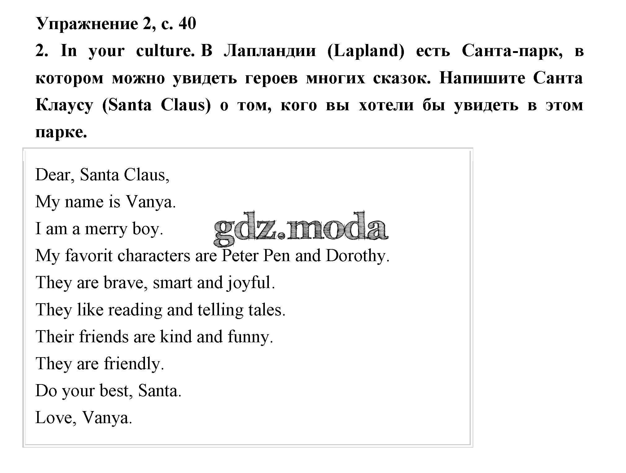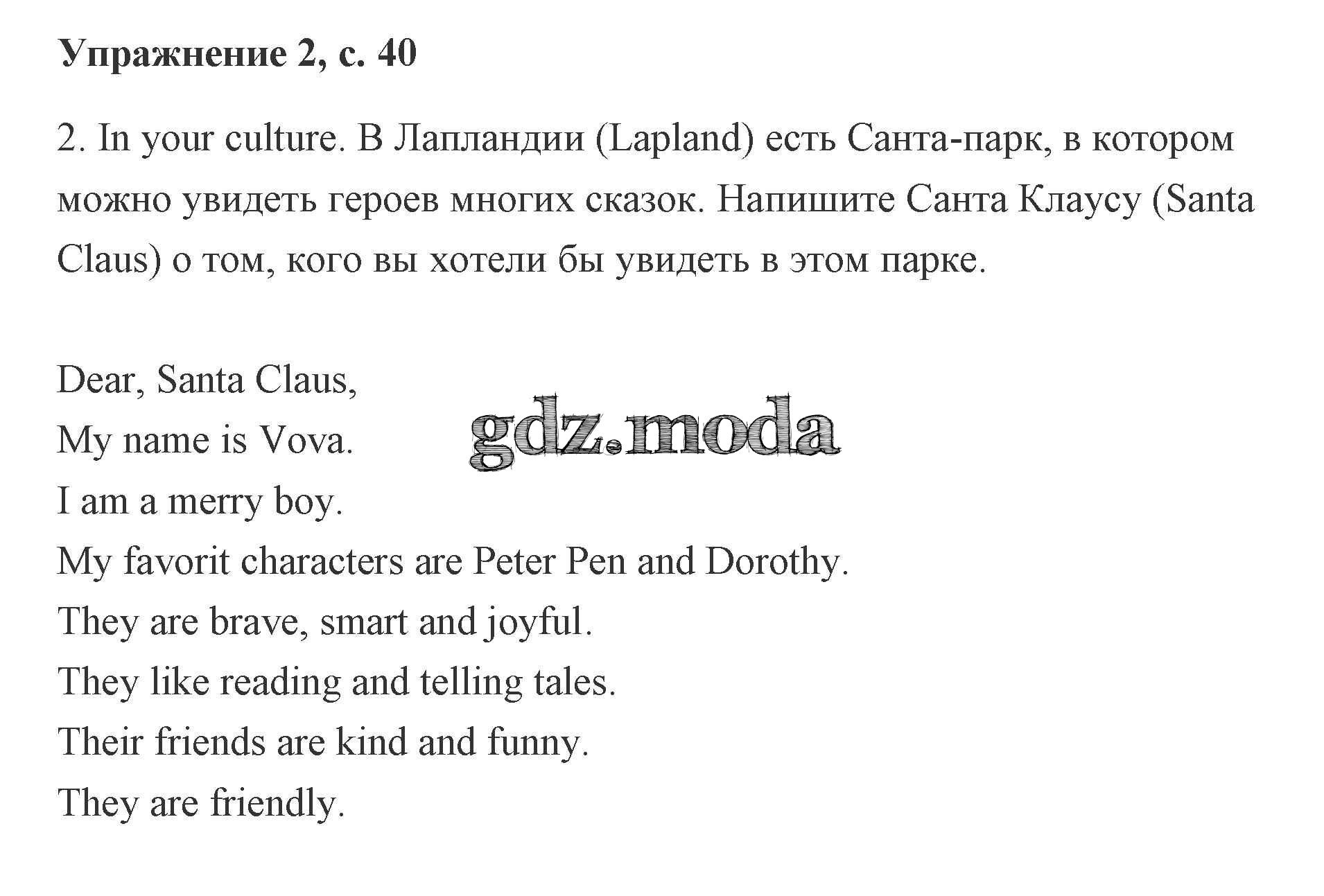 ОТВЕТ на задание № 40 Рабочая тетрадь по Английскому языку 2 класс Кузовлев