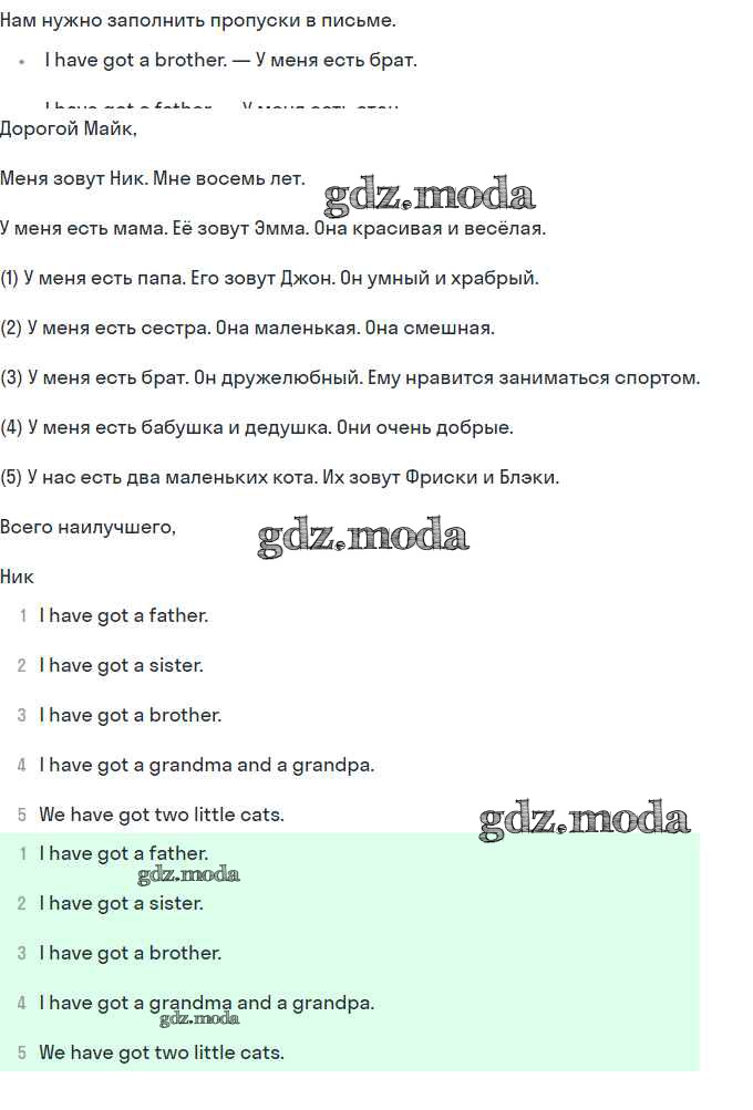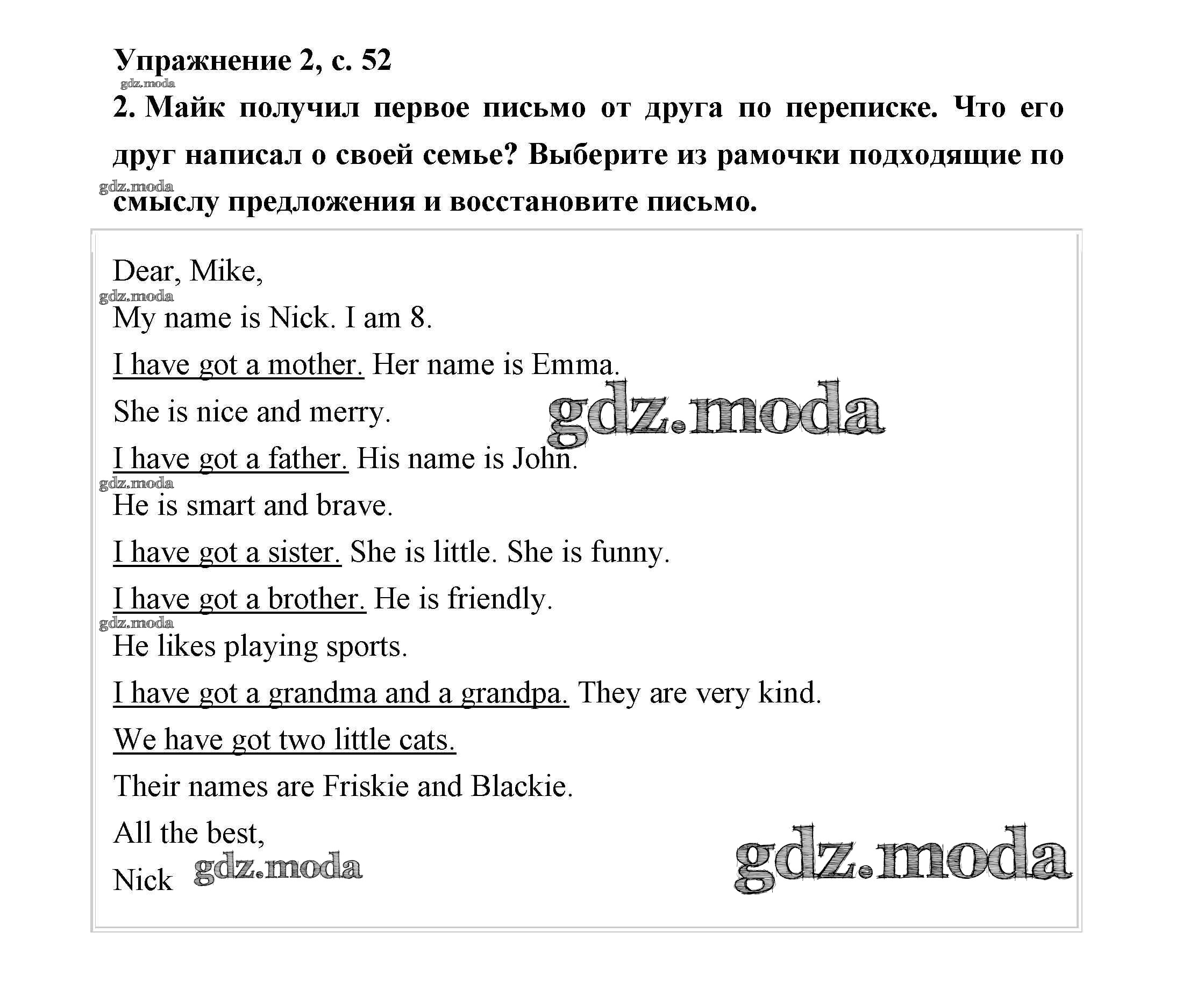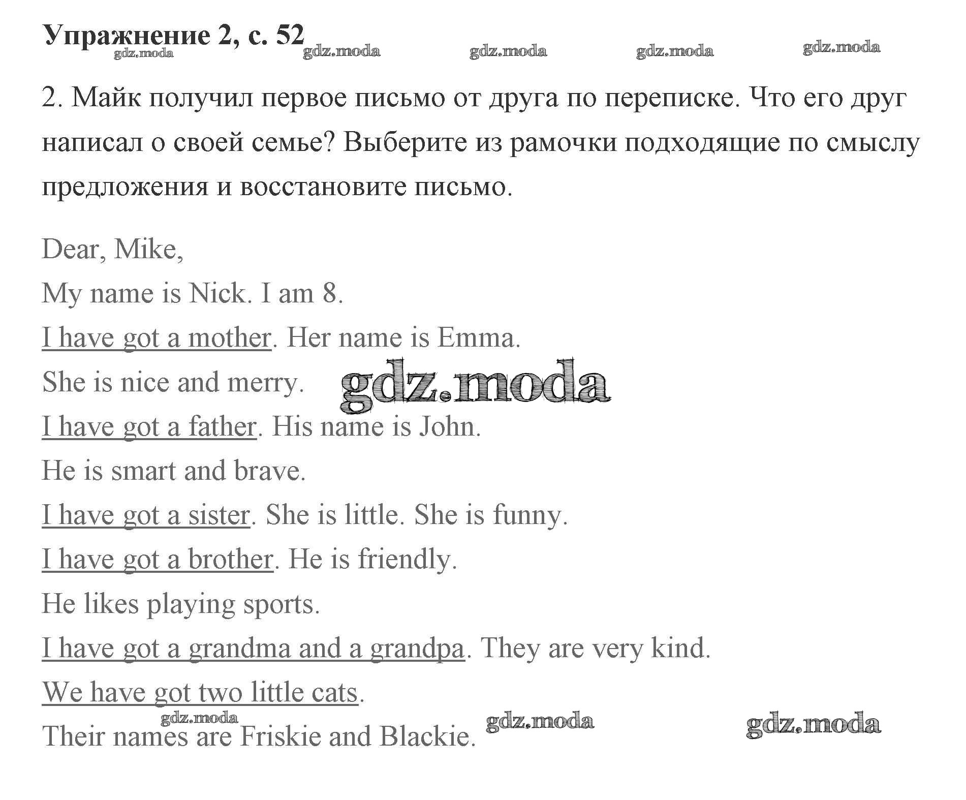 ОТВЕТ на задание № 52 Рабочая тетрадь по Английскому языку 2 класс Кузовлев