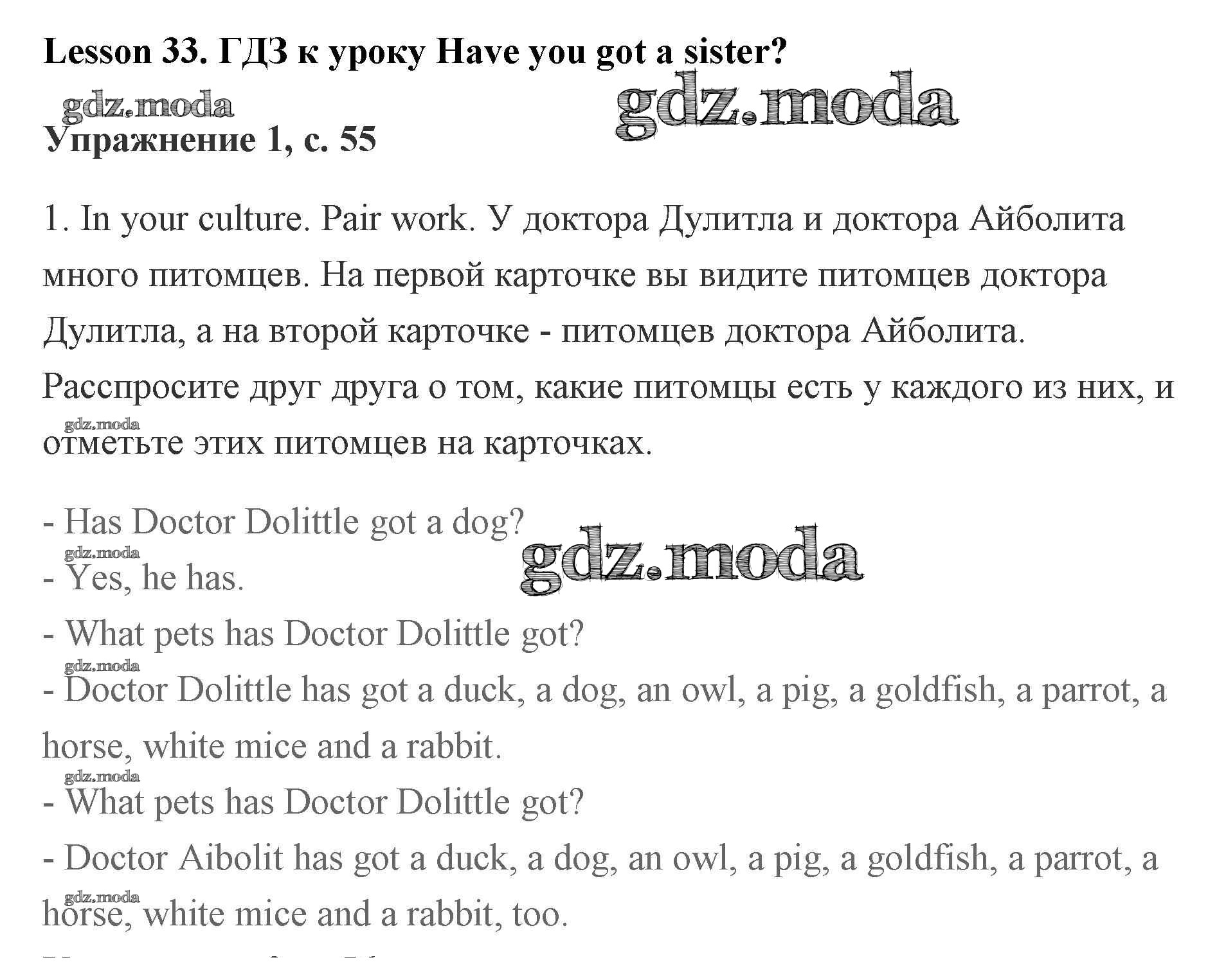 ОТВЕТ на задание № 55 Рабочая тетрадь по Английскому языку 2 класс Кузовлев