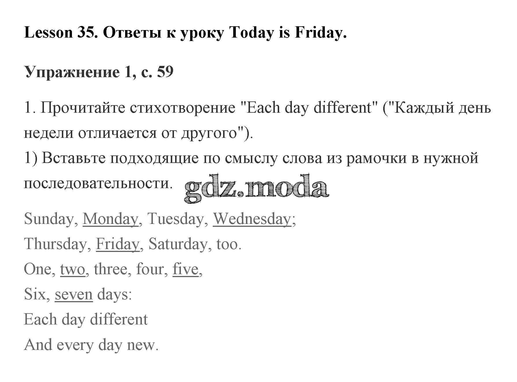 ОТВЕТ на задание № 59 Рабочая тетрадь по Английскому языку 2 класс Кузовлев