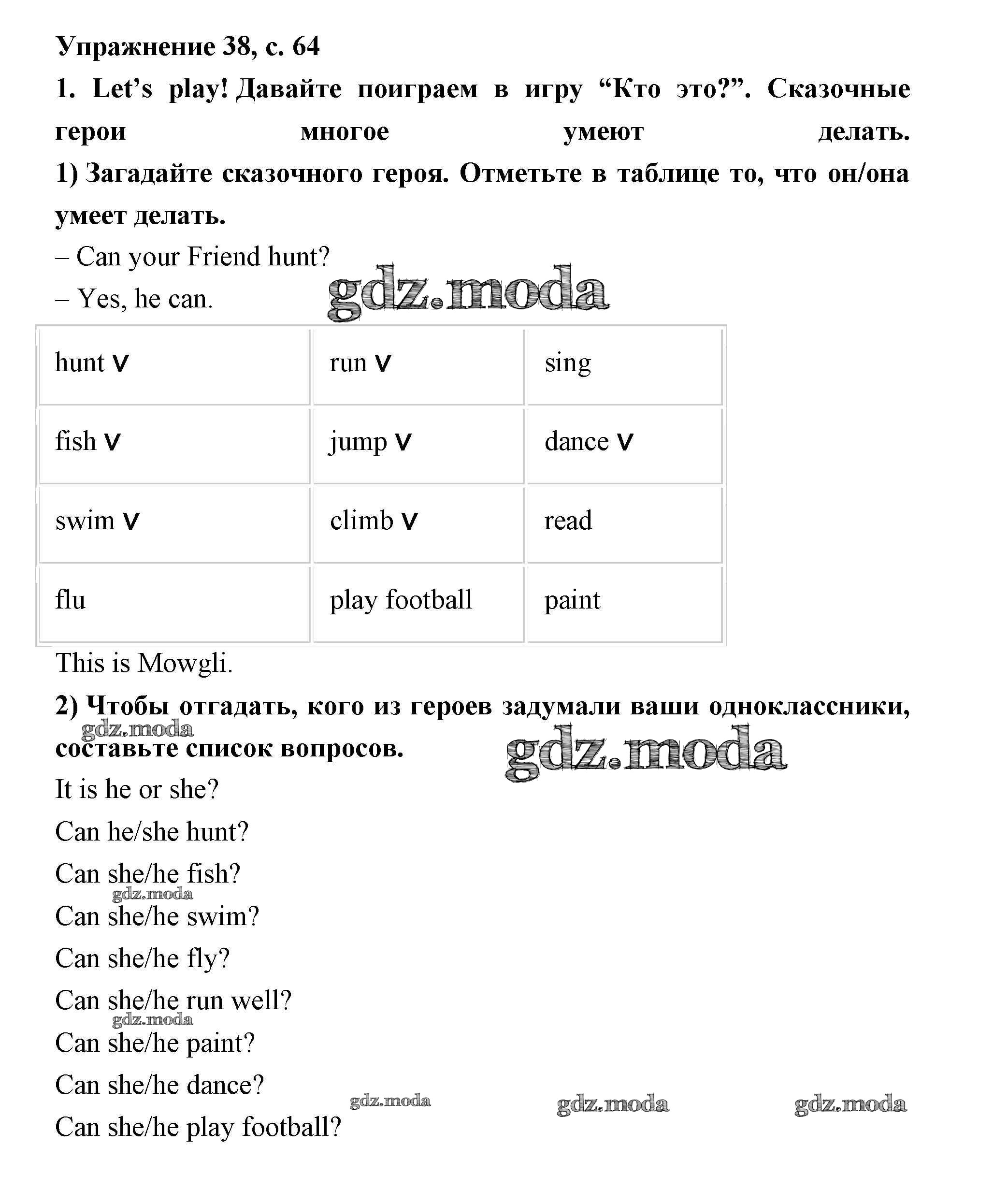 ОТВЕТ на задание № 64 Рабочая тетрадь по Английскому языку 2 класс Кузовлев