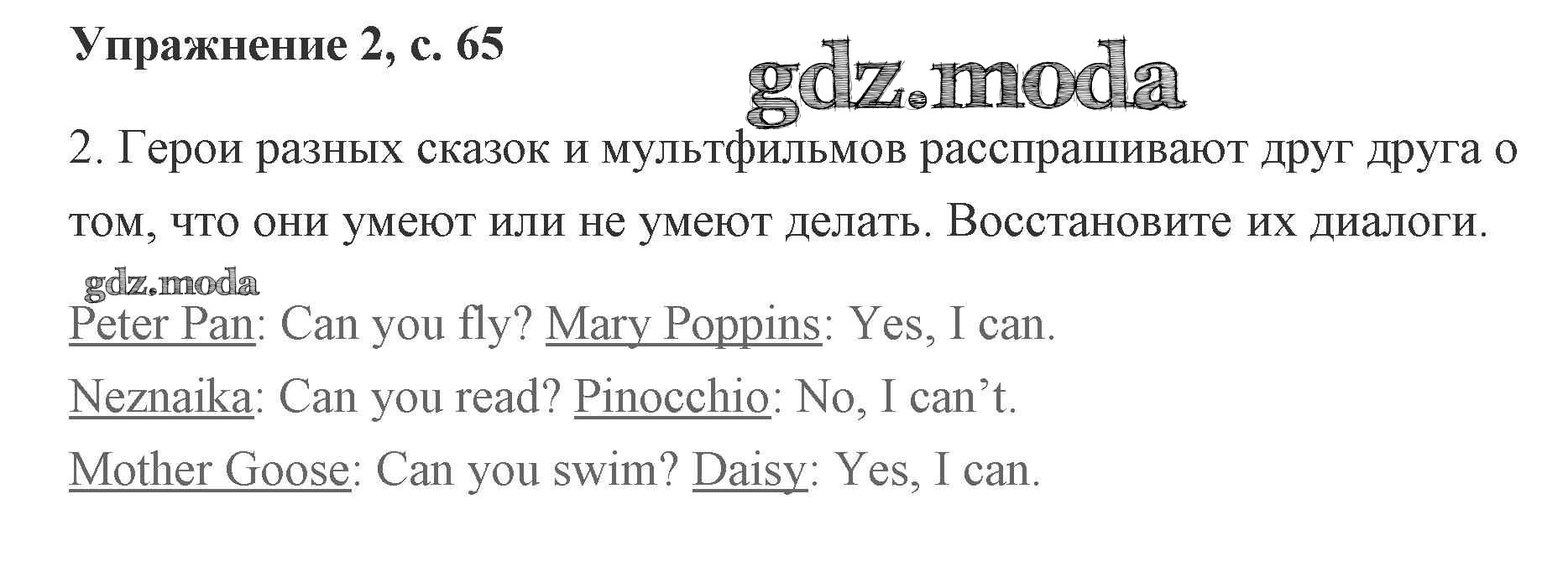 ОТВЕТ на задание № 65 Рабочая тетрадь по Английскому языку 2 класс Кузовлев
