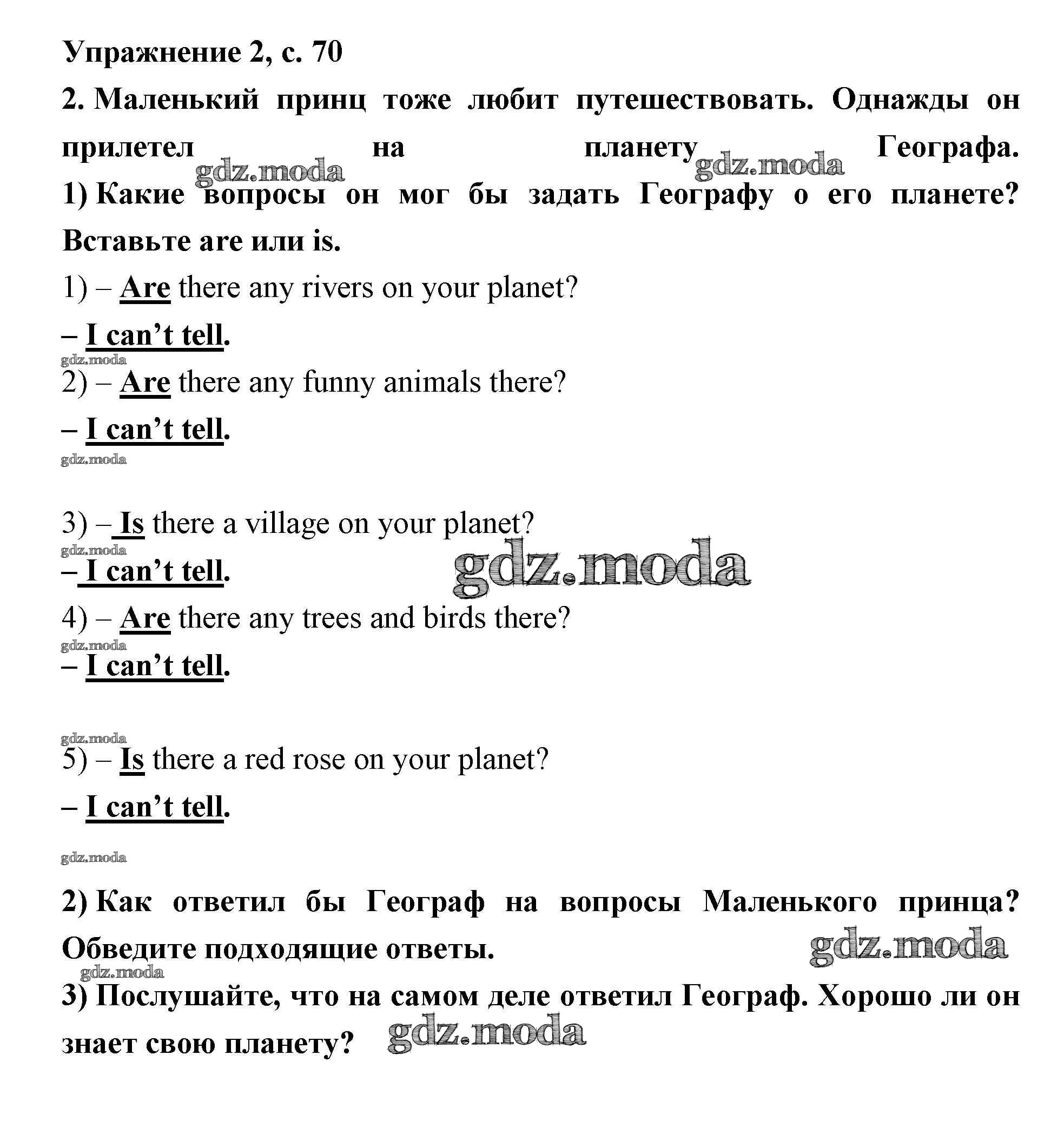 ОТВЕТ на задание № 70 Рабочая тетрадь по Английскому языку 2 класс Кузовлев