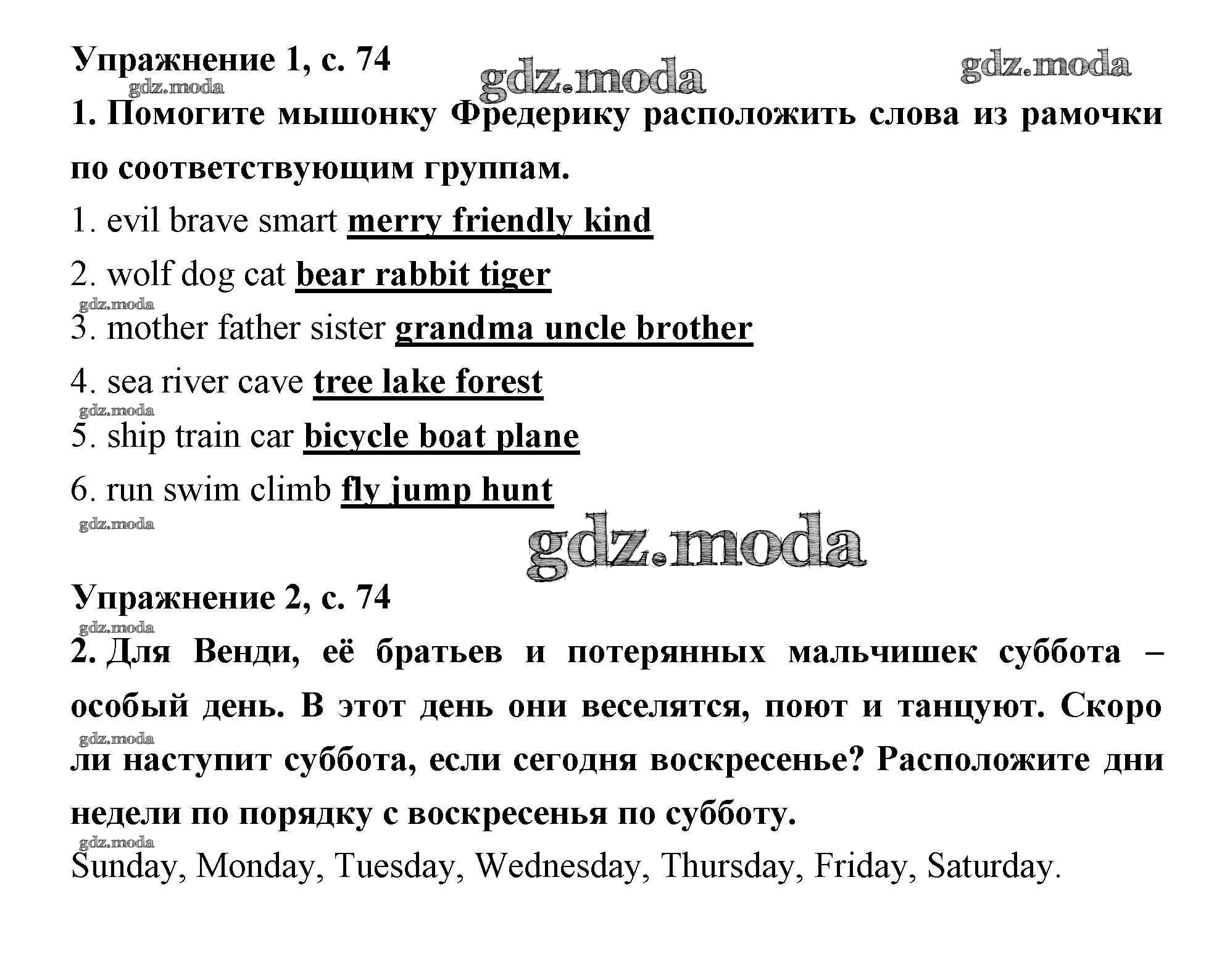 ОТВЕТ на задание № 74 Рабочая тетрадь по Английскому языку 2 класс Кузовлев