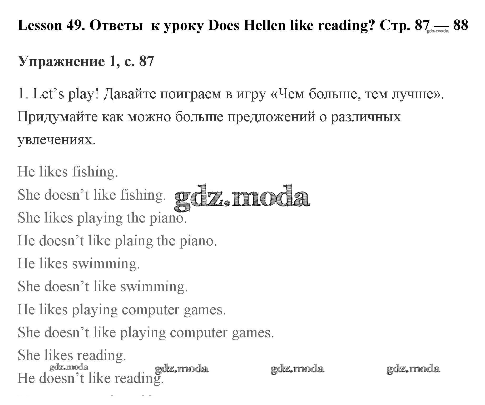 lesson 49. Does Hellen like reading / 87
