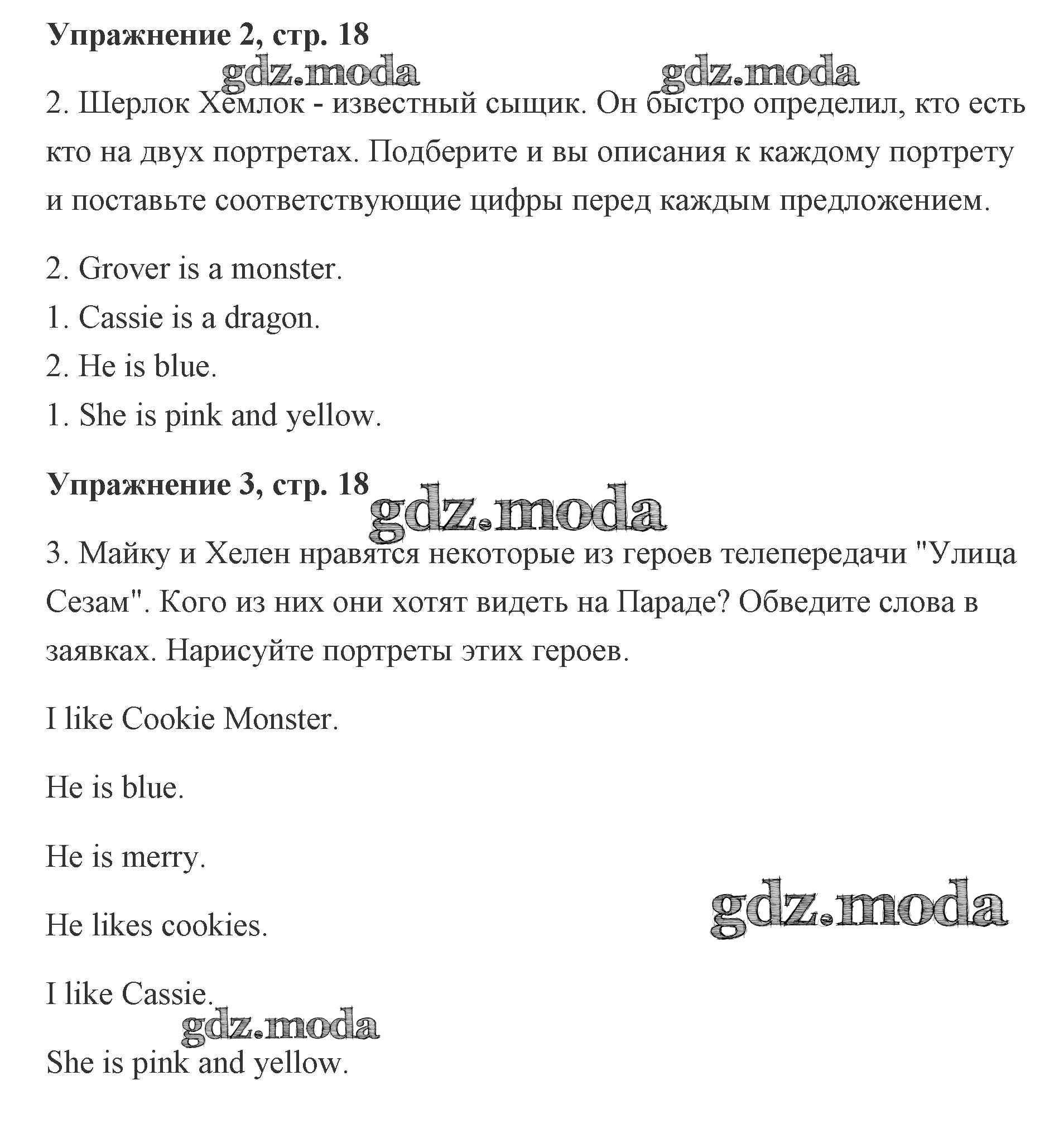 ОТВЕТ на задание № 18 Рабочая тетрадь по Английскому языку 2 класс Кузовлев