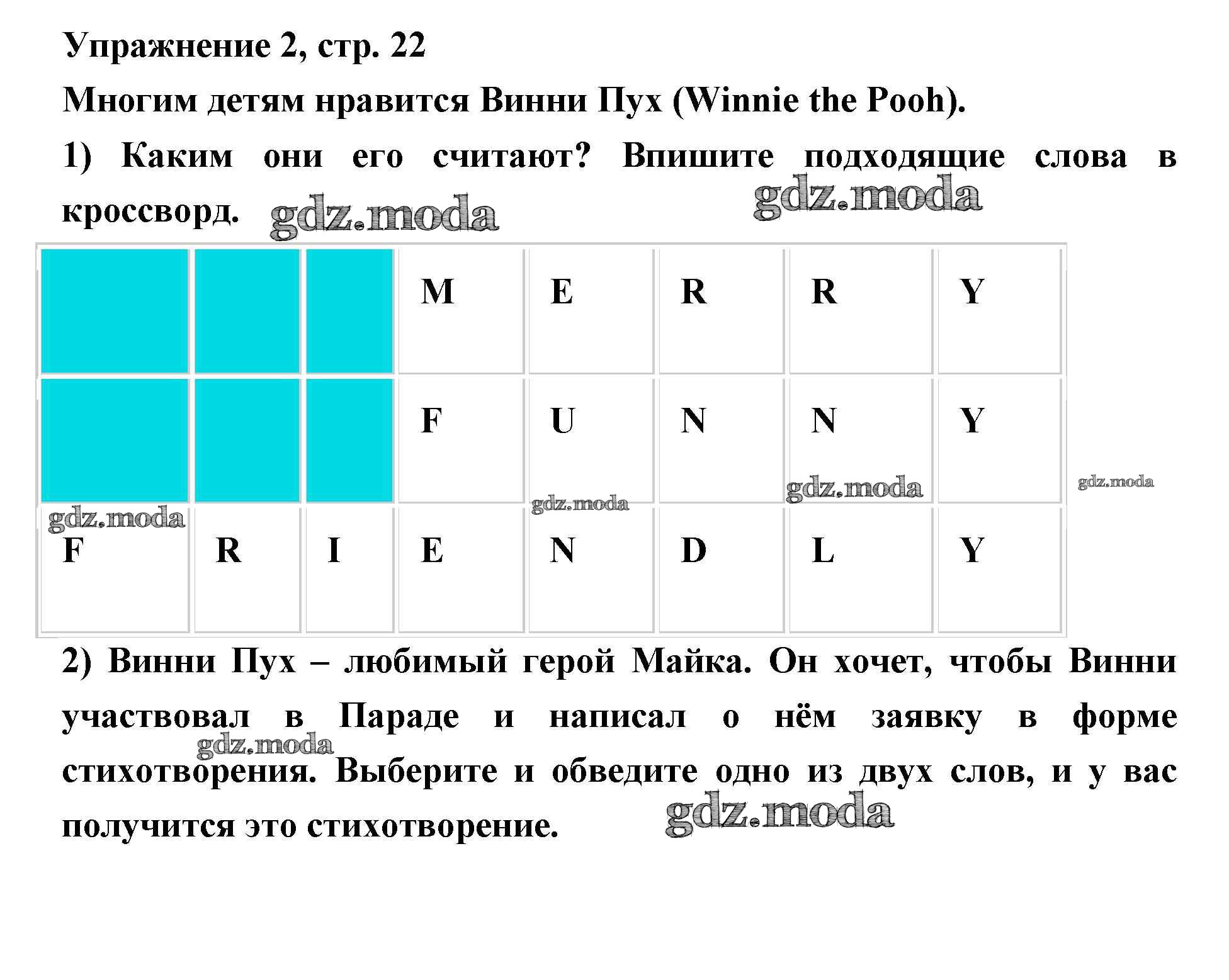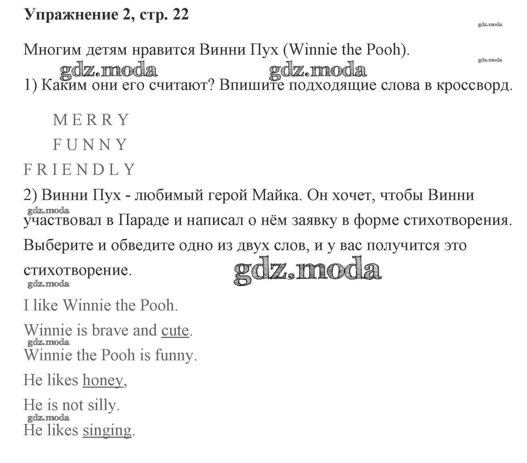 ОТВЕТ на задание № 22 Рабочая тетрадь по Английскому языку 2 класс Кузовлев