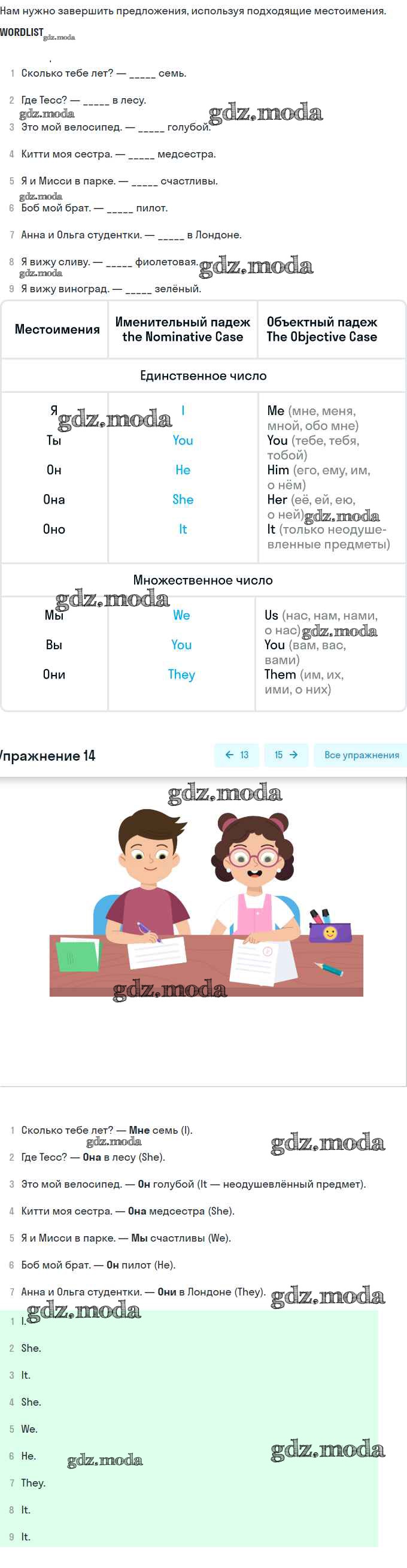 ГДЗ решение к заданию № 14 Английский язык 2 класс лексико-грамматический практикум Афанасьева О.В. Просвещение 2020 ФГОС бесплатно на гдз.мода!