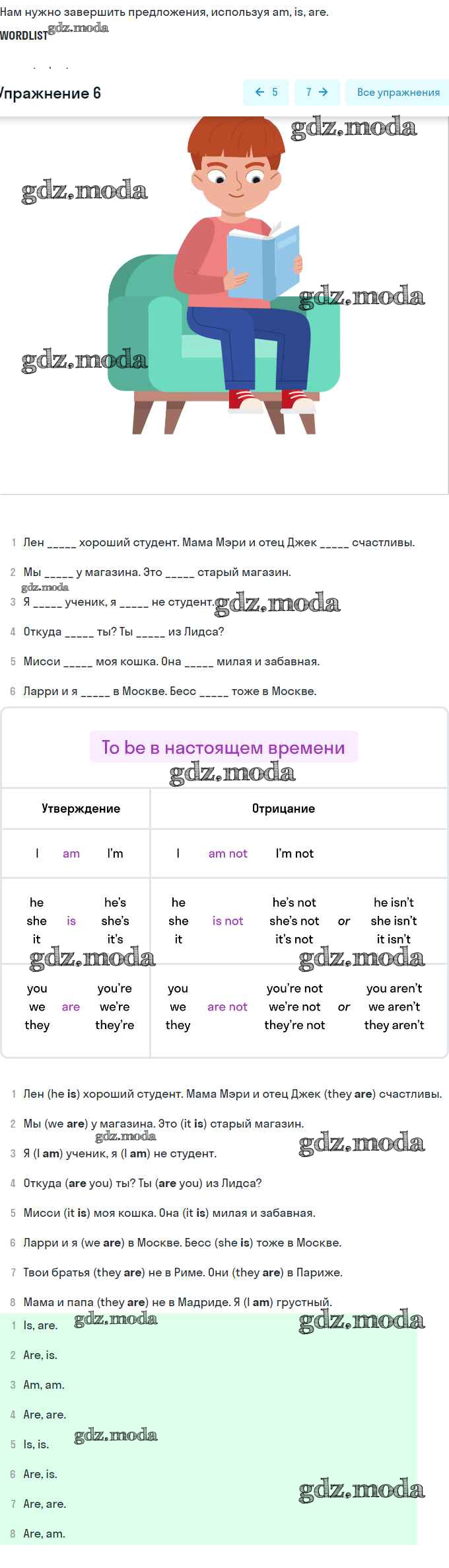 ГДЗ решение к заданию № 6 Английский язык 2 класс лексико-грамматический практикум Афанасьева О.В. Просвещение 2020 ФГОС бесплатно на гдз.мода!