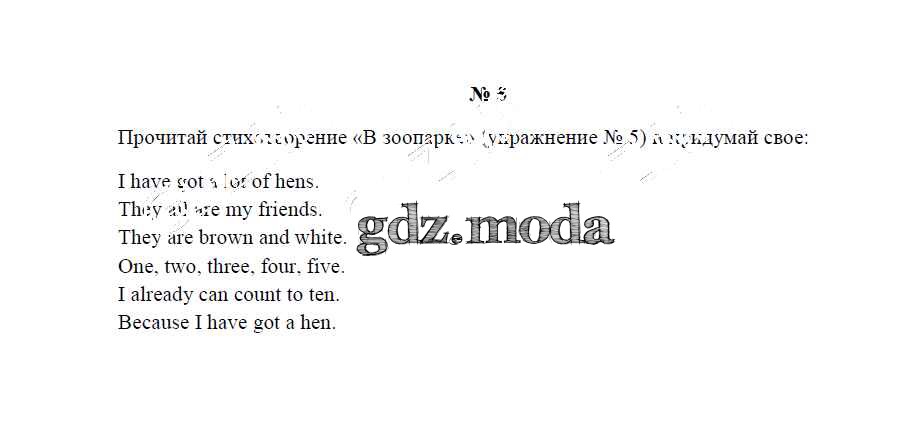 ГДЗ решение к заданию № Домашнее задание 5 Английский язык 2 класс Верещагина И.Н. Просвещение 2017 Часть 1, Часть 2 Углубленный уровень ФГОС бесплатно на гдз.мода!