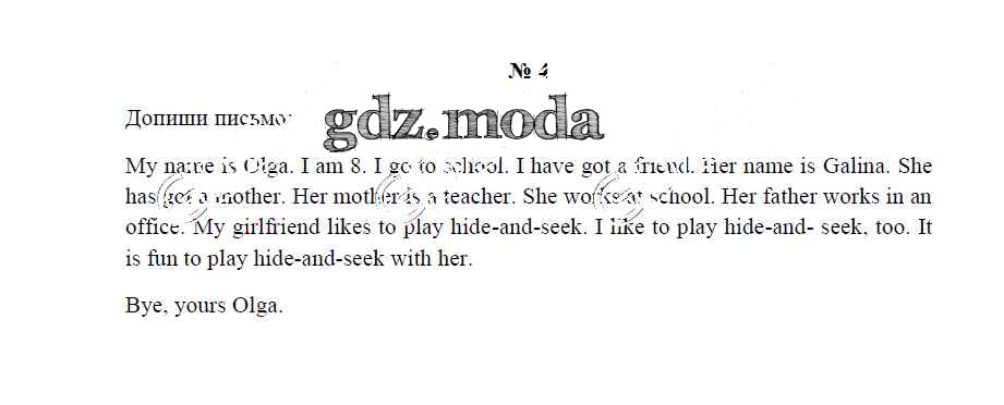 ГДЗ решение к заданию № 4 Английский язык 2 класс рабочая тетрадь Верещагина И.Н. Просвещение 2017 Углубленный уровень ФГОС бесплатно на гдз.мода!