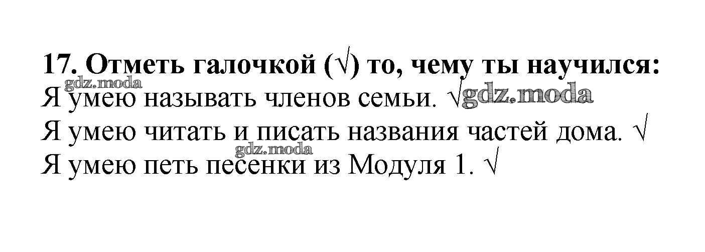 ГДЗ решение к заданию № 17 Английский язык 2 класс рабочая тетрадь Starlight Баранова К.М. Просвещение 2016 Часть 1, Часть 2 Углубленный уровень ФГОС бесплатно на гдз.мода!