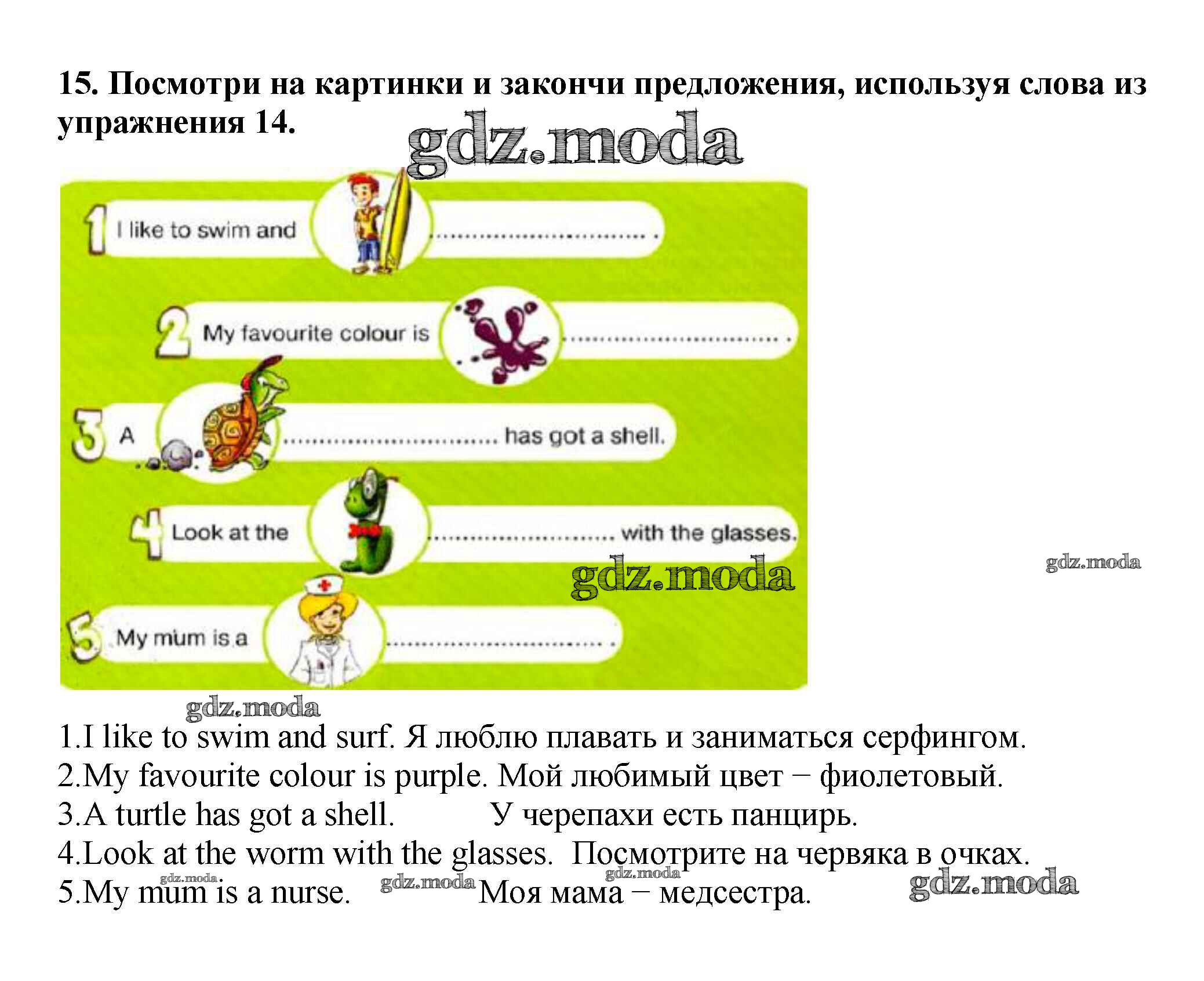 ГДЗ решение к заданию № 15 Английский язык 2 класс рабочая тетрадь Starlight Баранова К.М. Просвещение 2016 Часть 1, Часть 2 Углубленный уровень ФГОС бесплатно на гдз.мода!